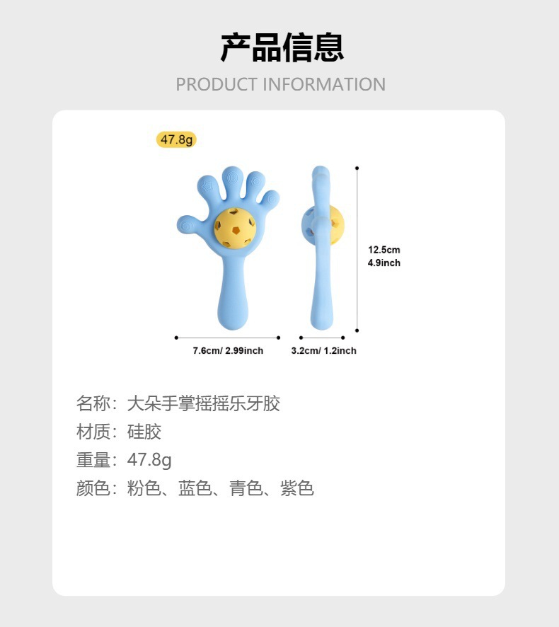 婴儿手摇铃宝宝牙胶0-2岁益智抓握训练幼儿咬咬乐可水煮安抚玩具