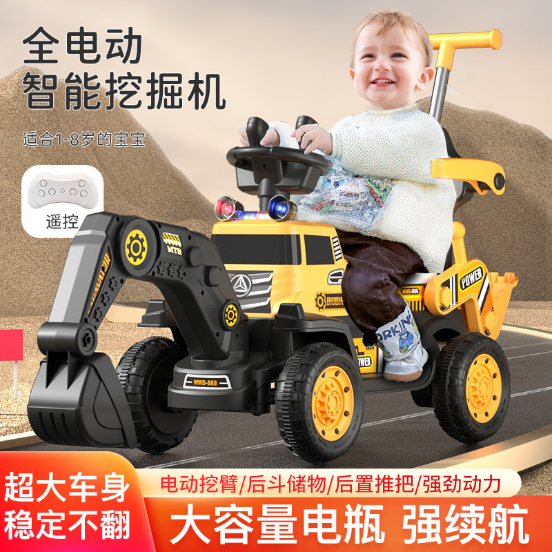 娃娃队儿童电动老挖机小孩可做人充电挖土机男孩工程车超大勾机