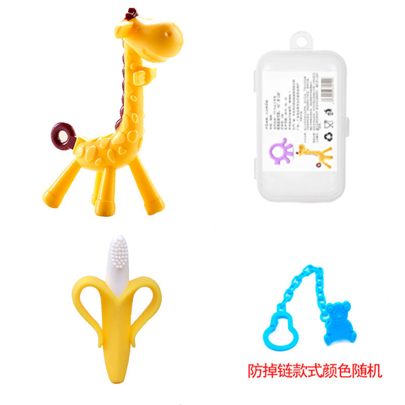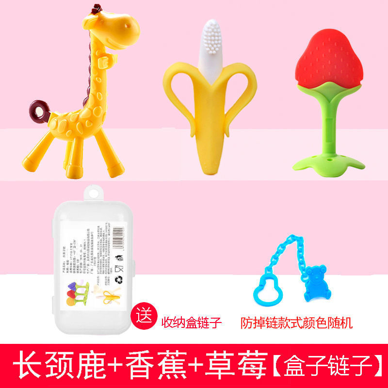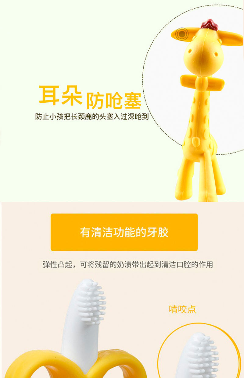 安抚牙胶新生婴儿咬咬乐硅胶软可水煮香蕉牙胶小鹿磨牙棒玩具