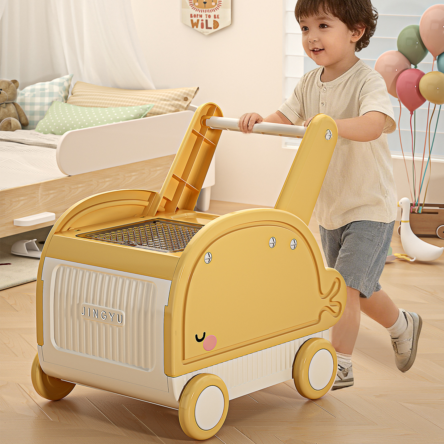 学步车家用儿童宝宝零食玩具多功能储物收纳箱萌趣婴儿助步小推车