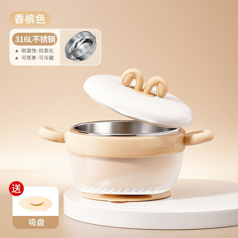 宝宝辅食碗婴幼儿注水保温碗儿童防摔防烫不锈钢吃饭专用吸盘餐具