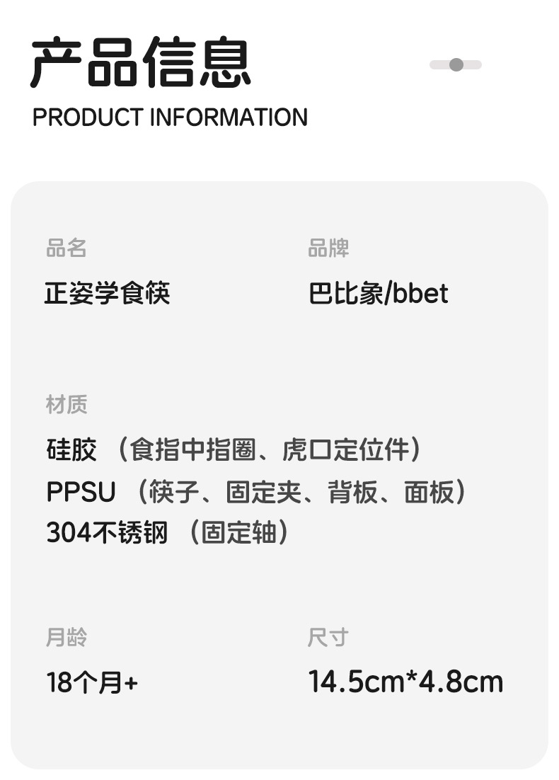 巴比象PPSU儿童筷子虎口筷辅助学习训练筷宝宝幼儿专用2-6岁练习