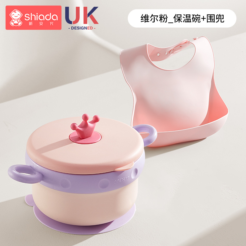- 【注水碗+围兜2件套】粉紫色+粉色围兜
