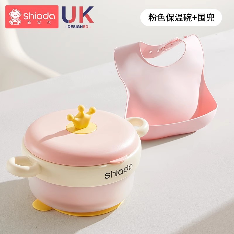 - 【注水碗+围兜2件套】感温粉色+粉色围兜