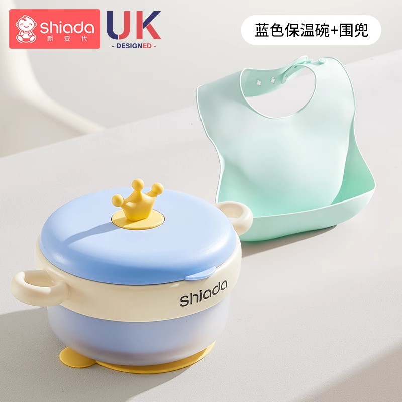 - 【注水碗+围兜2件套】感温蓝色+绿色围兜