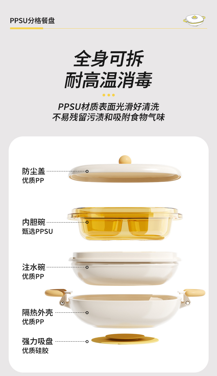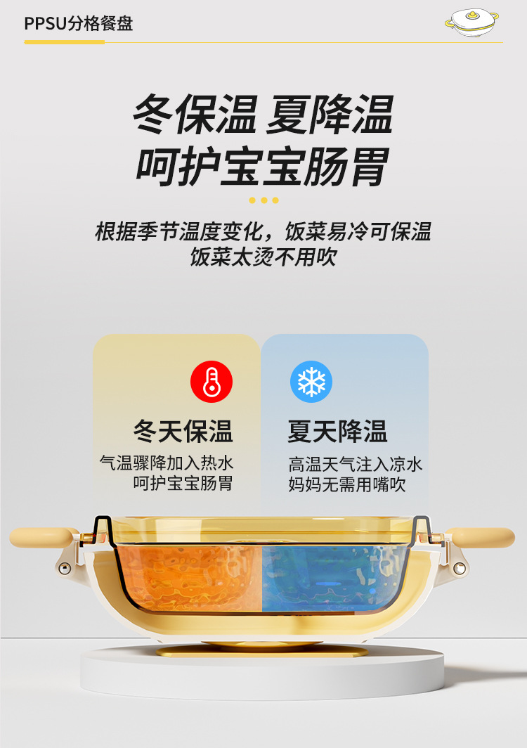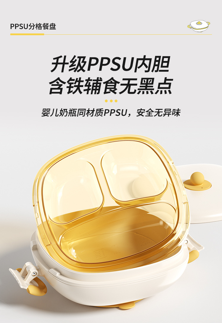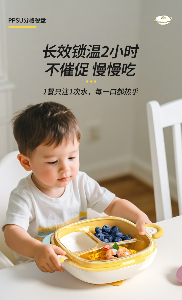 PPSU注水保温碗吸盘式防摔宝宝餐盘儿童辅食分格盘婴儿自主进食碗