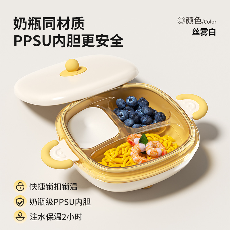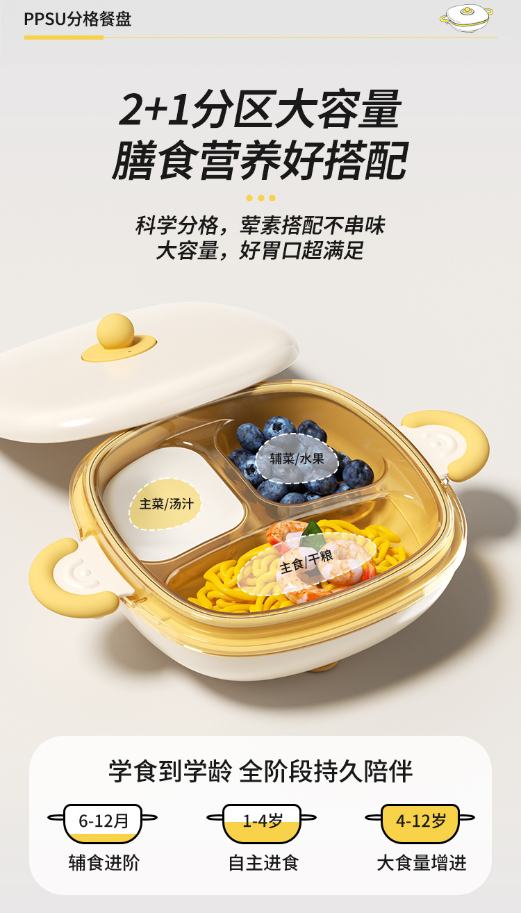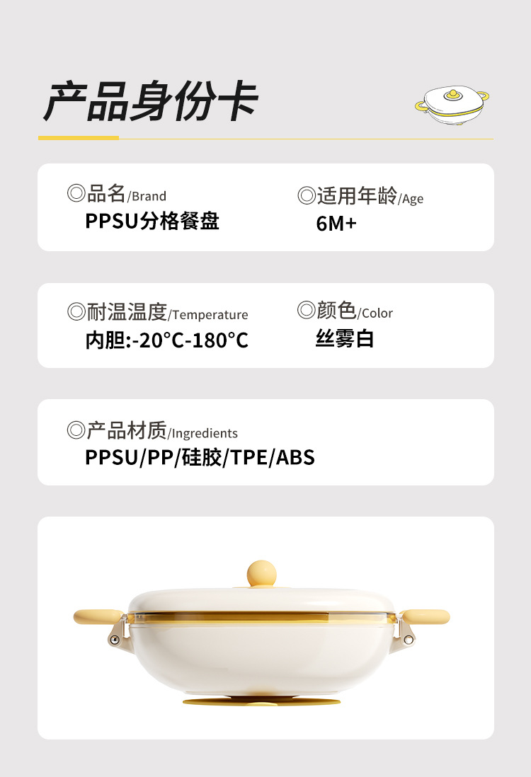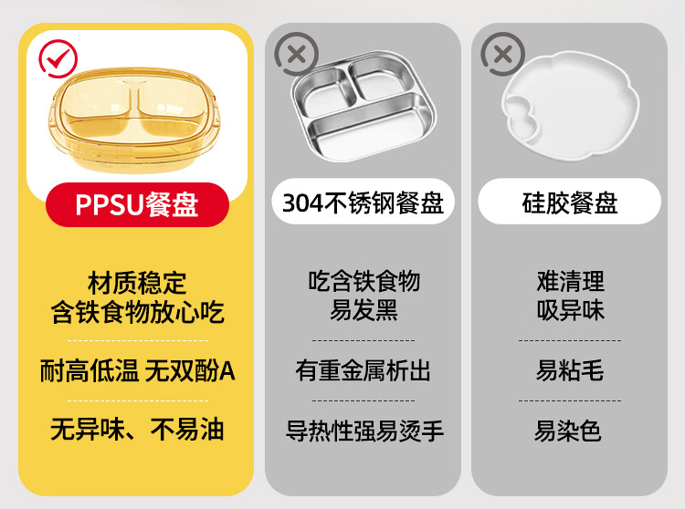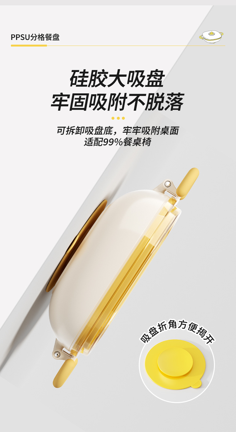 PPSU注水保温碗吸盘式防摔宝宝餐盘儿童辅食分格盘婴儿自主进食碗