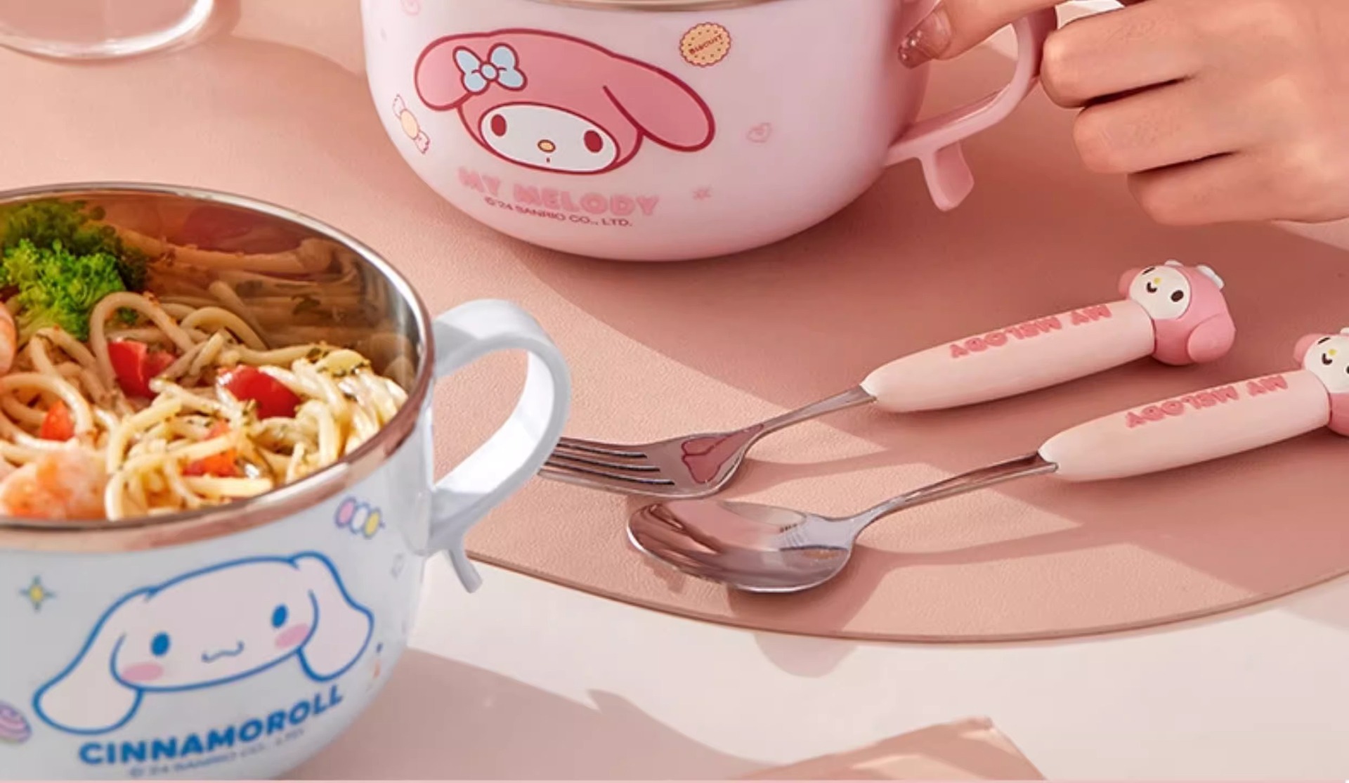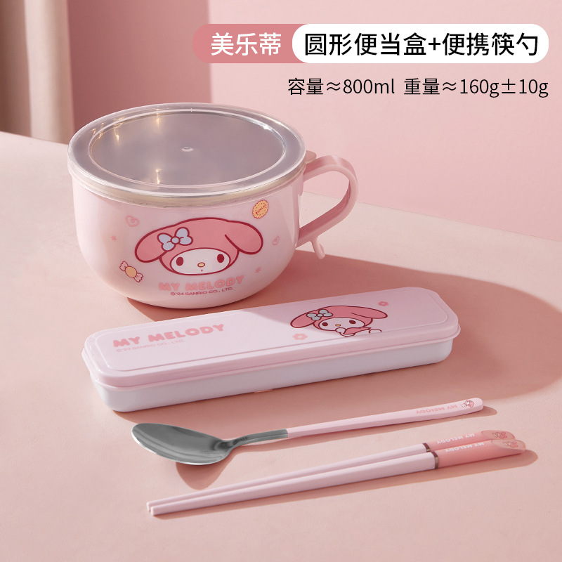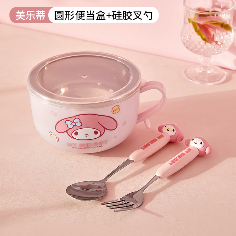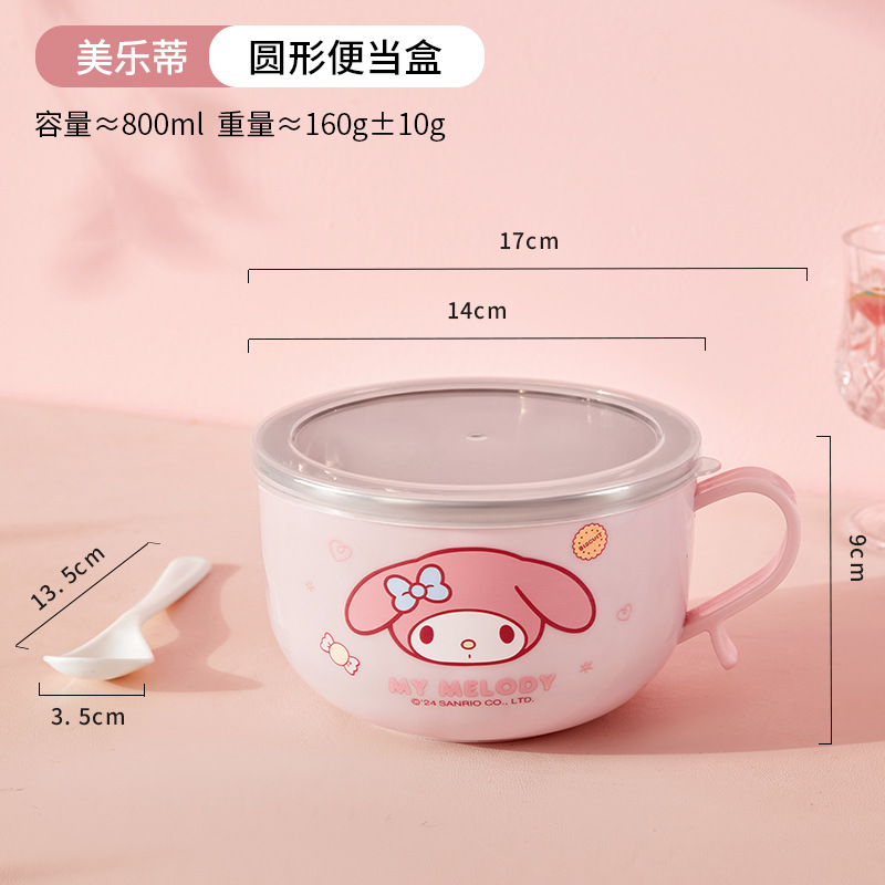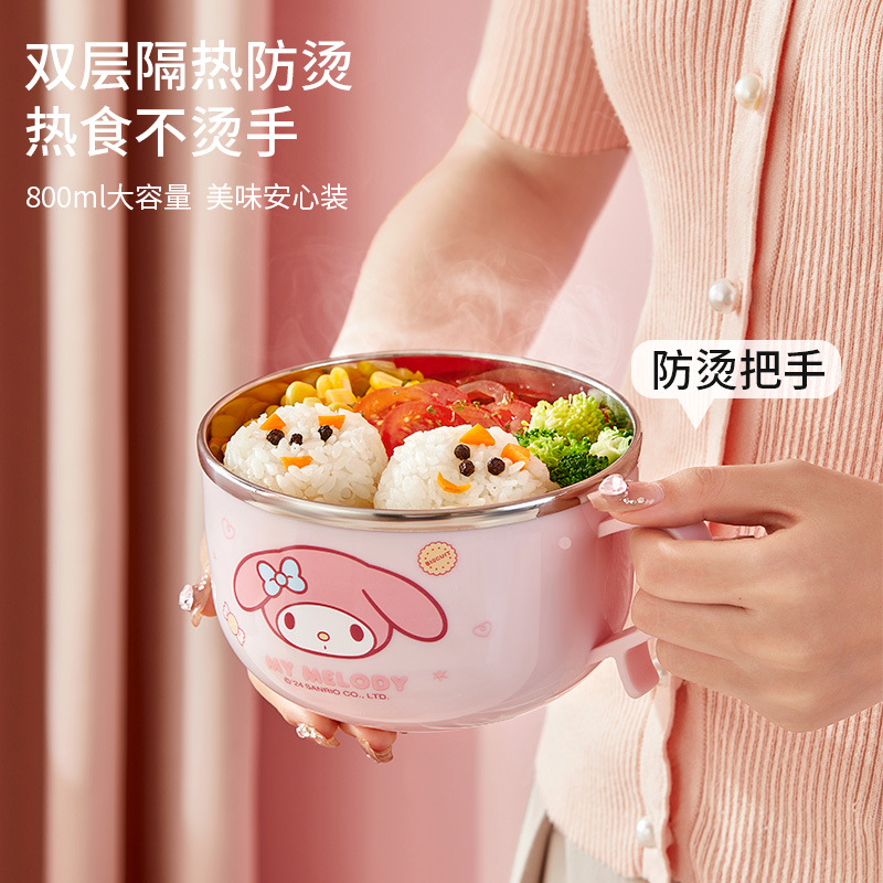 三丽鸥带盖不锈钢碗学生隔热防烫手柄碗儿童餐具吃饭碗家用泡面碗
