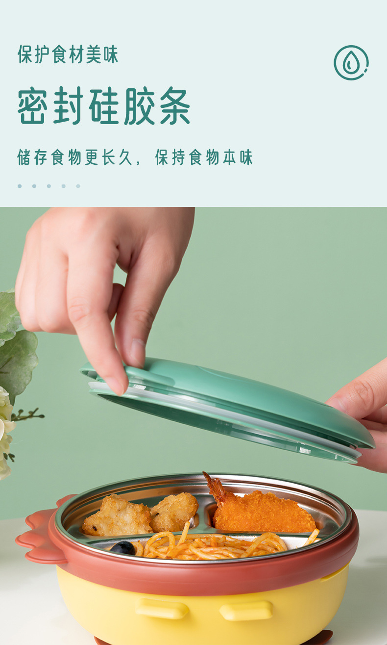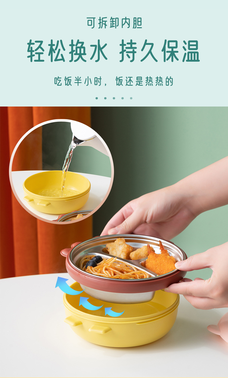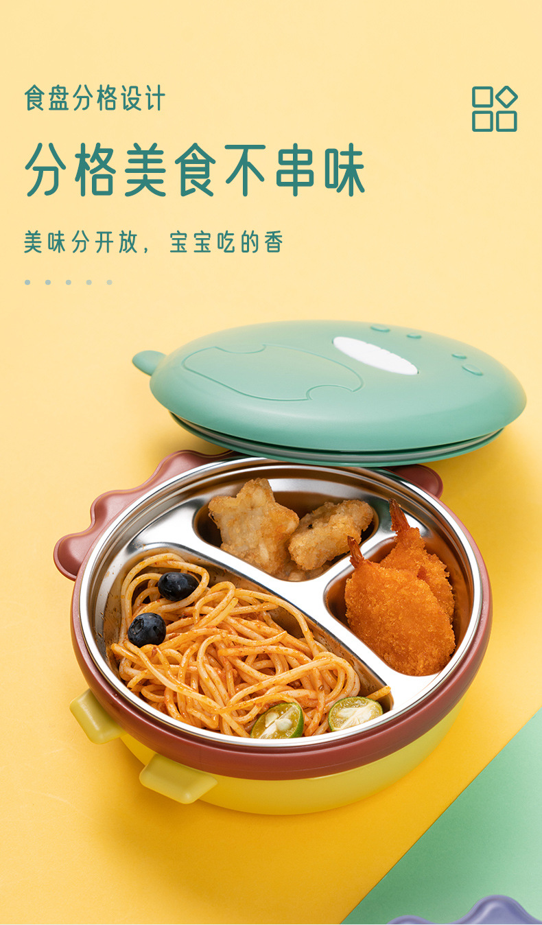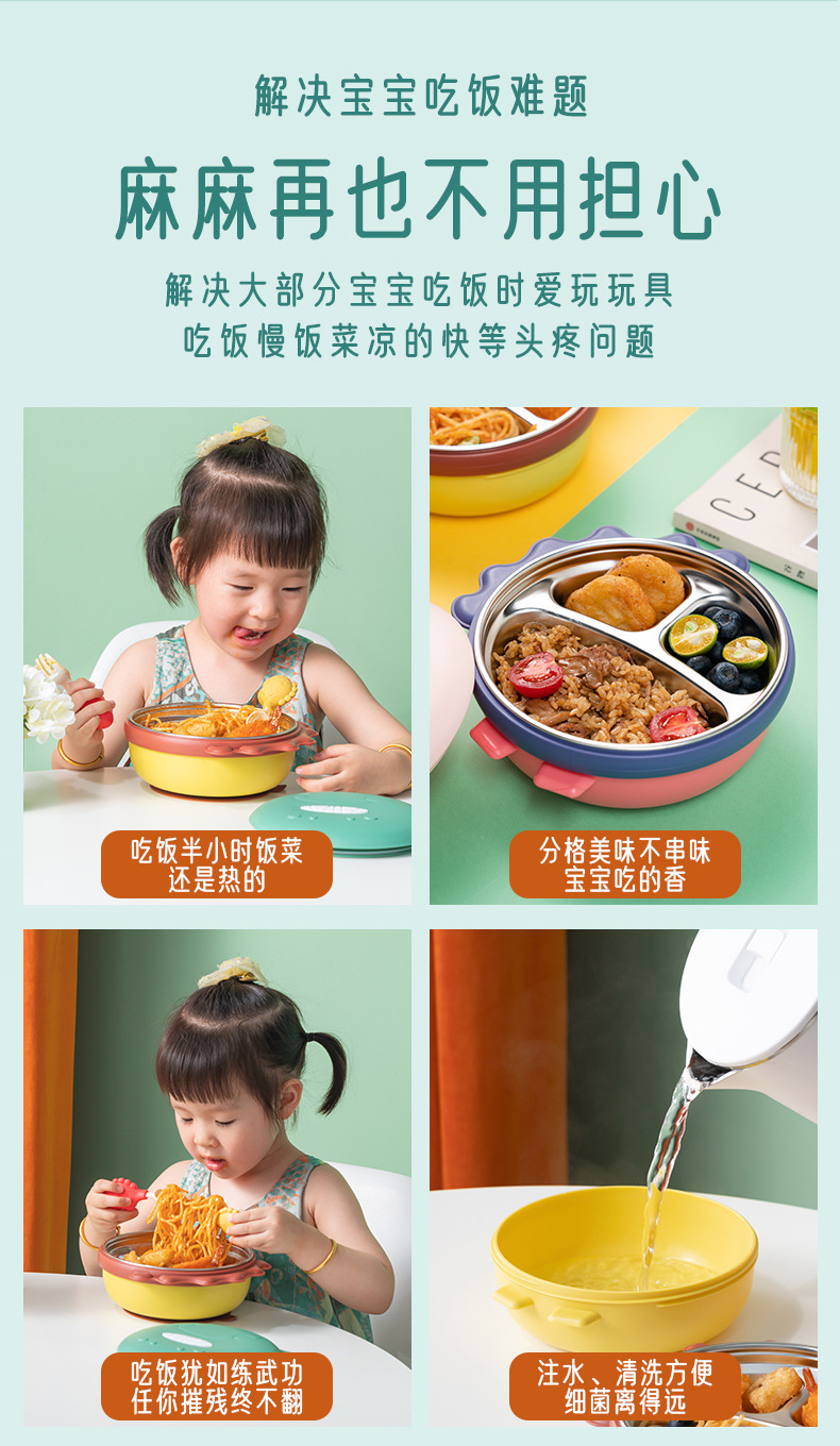 宝宝成长餐盘分格盘婴儿吸盘式注水保温辅食碗不锈钢儿童餐具