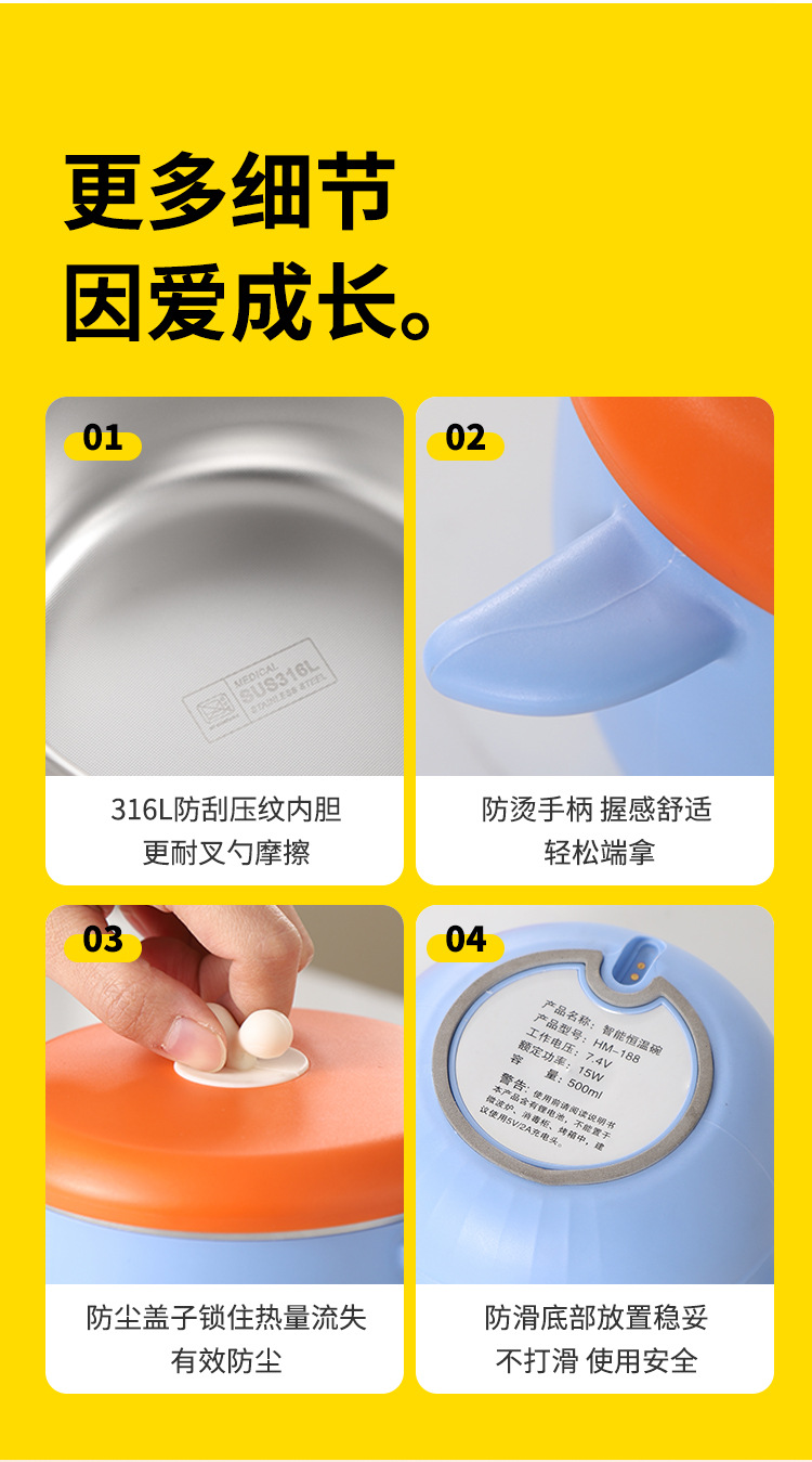 宝宝智能恒温碗儿童餐具辅食喂养碗免注水充电式保温加热餐具