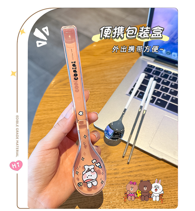 不锈钢筷子勺子套装小学生餐勺便携餐具收纳盒一人一筷上班筷新款