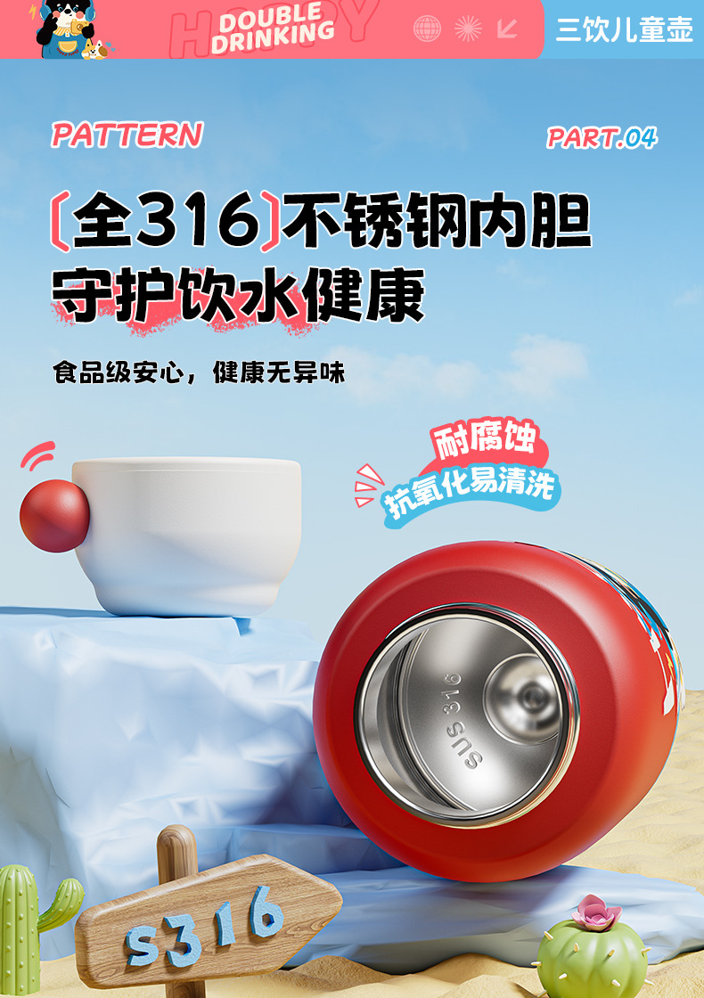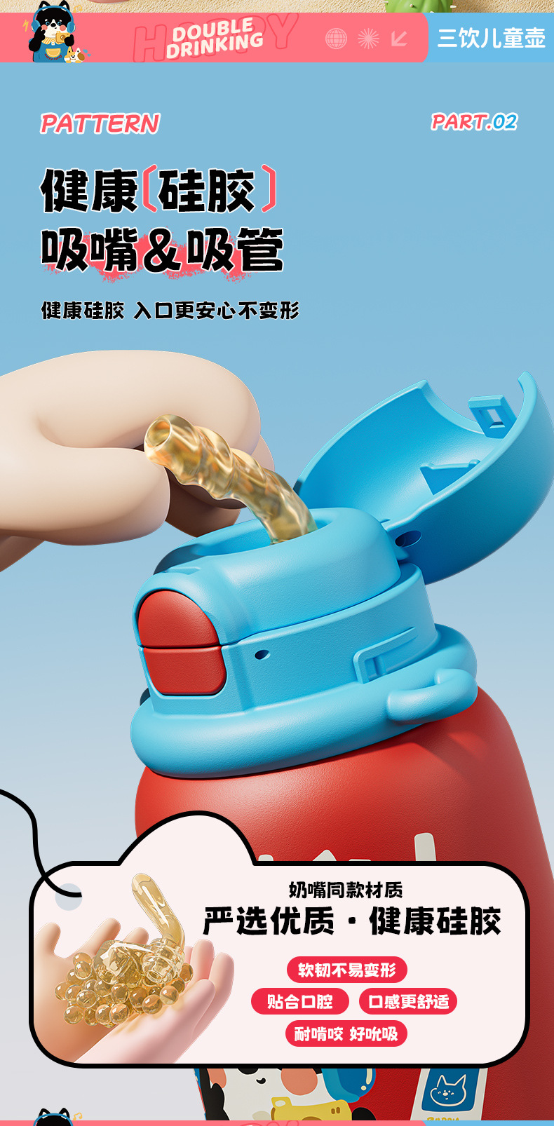 魔法小猫500ml【316内胆/三饮杯+背带+清洗套餐】