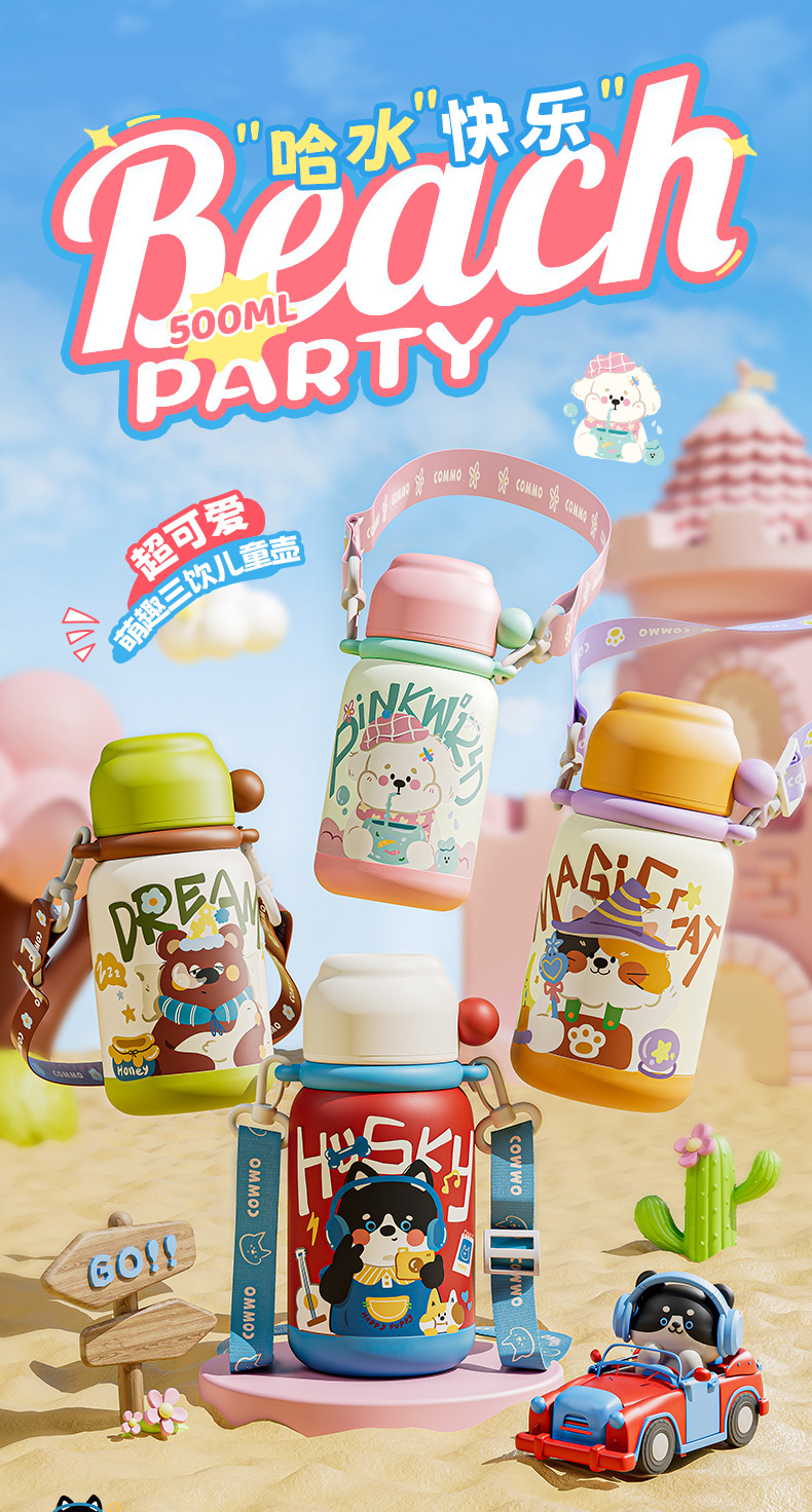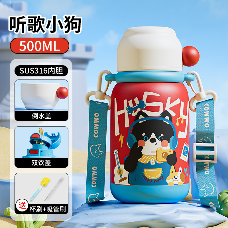 听歌小狗500ml【316内胆/三饮杯+背带+清洗套餐】