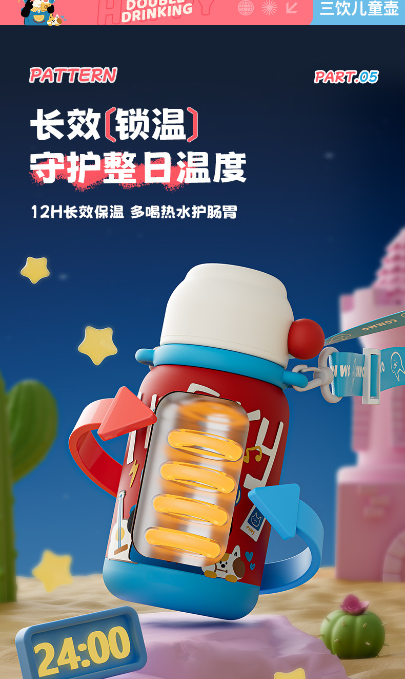 儿童保温杯男女生2025新款高颜值小学生上学专用便携吸管水壶杯子