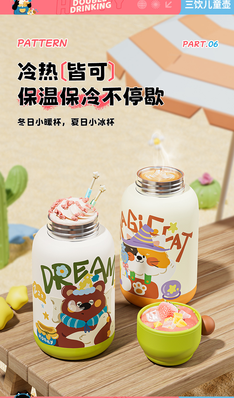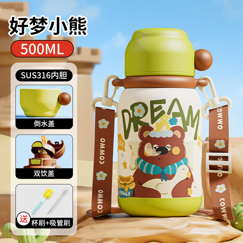 好梦小熊500ml【316内胆/三饮杯+背带+清洗套餐】