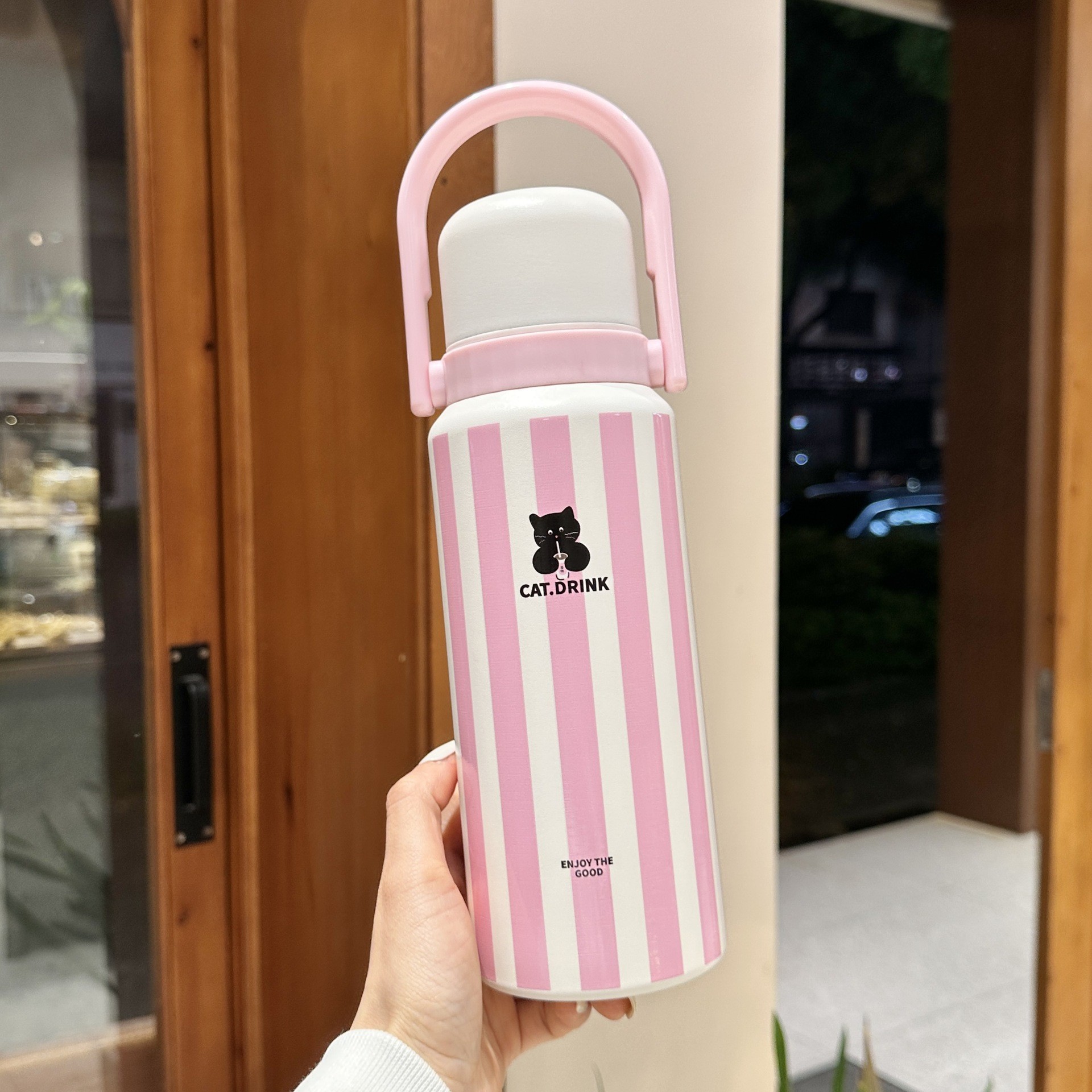 - 缘喵条纹系粉色600ML