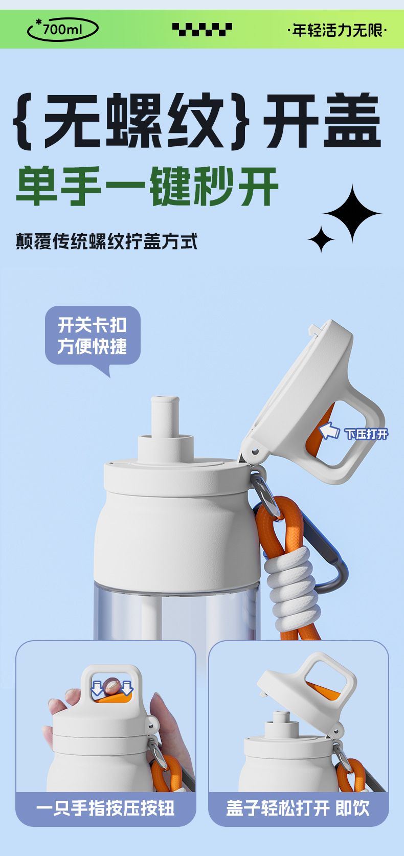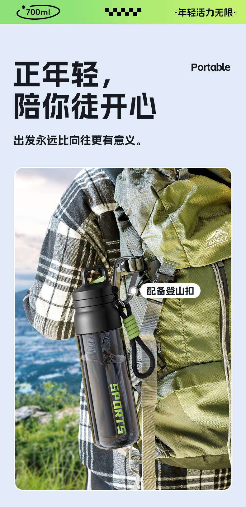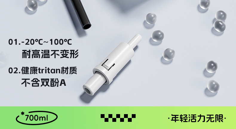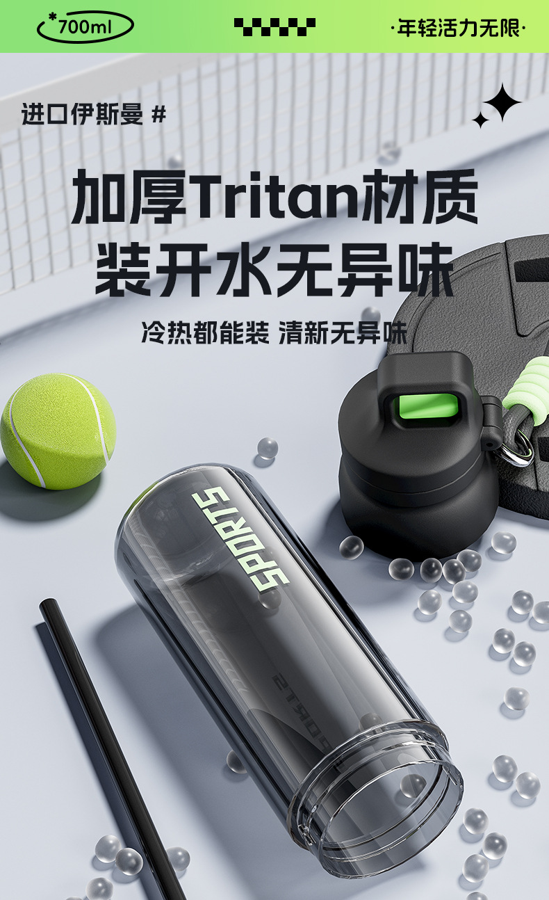 - Tritan【森绿690ml】送登山扣+杯刷+吸管刷.