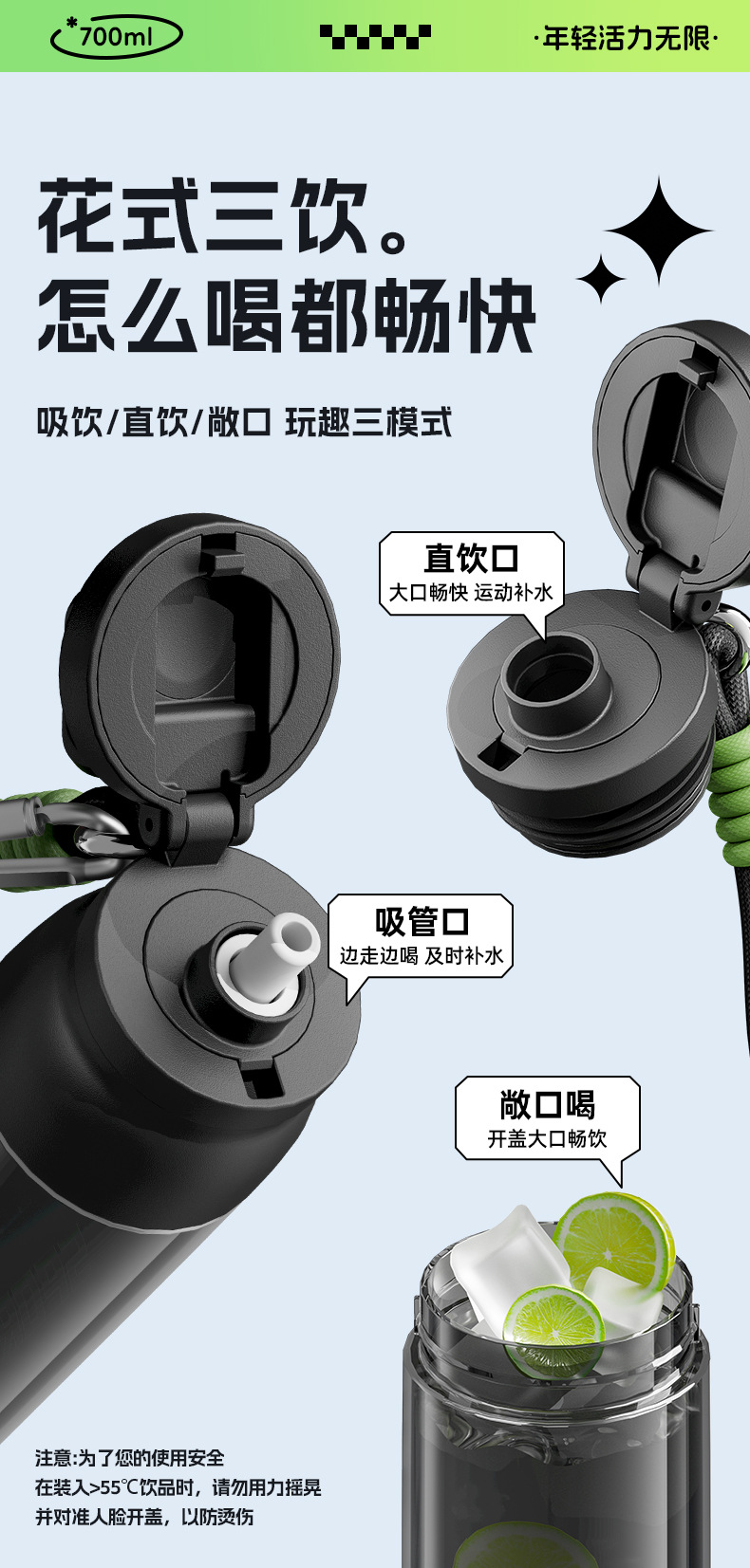 运动水杯男士2025新款塑料便携耐高温儿童学生通用专用大容量杯子