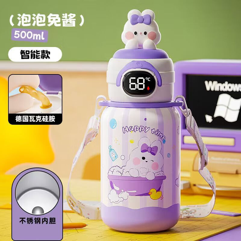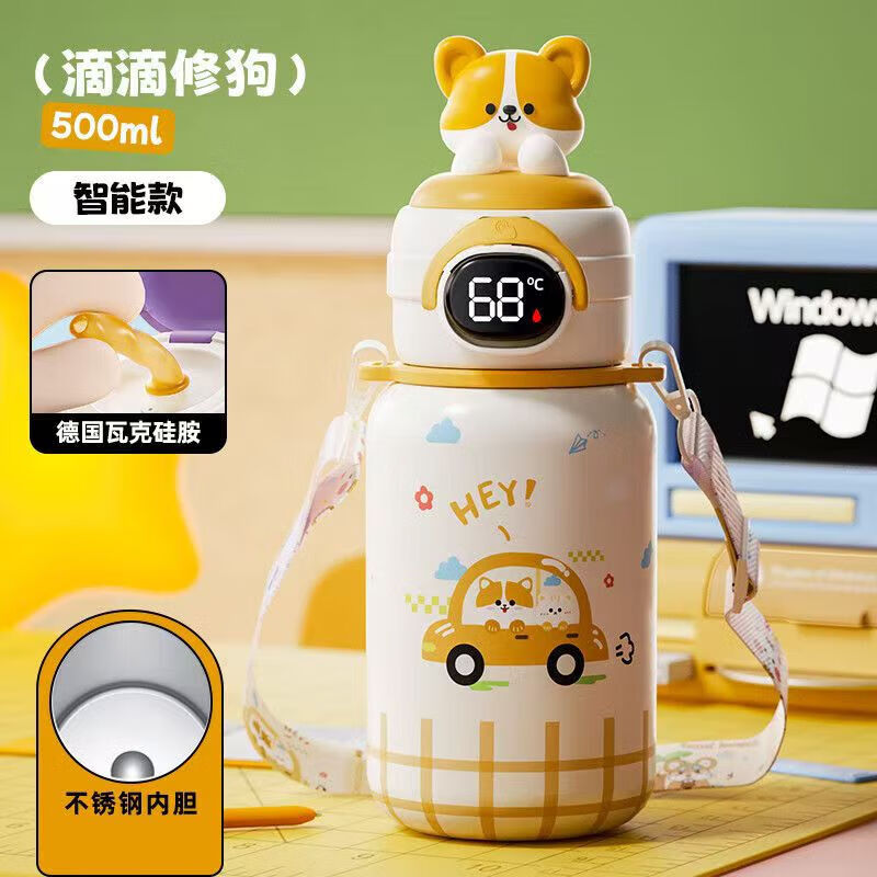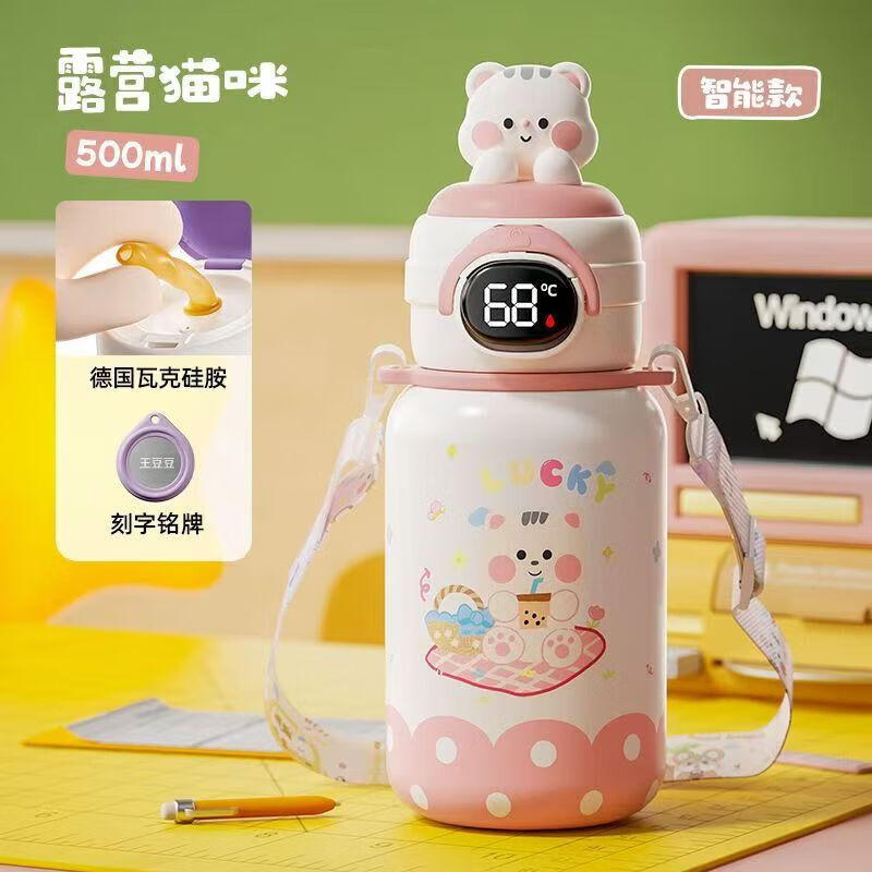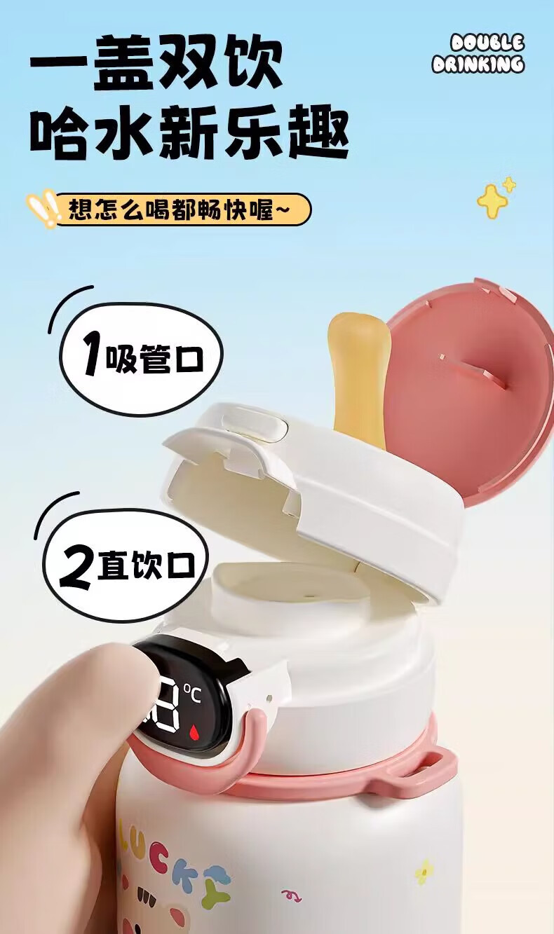 儿童保温杯男孩学生水杯初中生吸管杯子外出便携运动水壶轻奢风