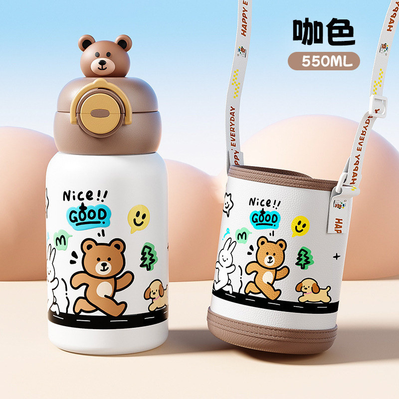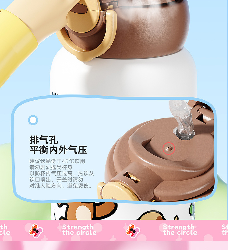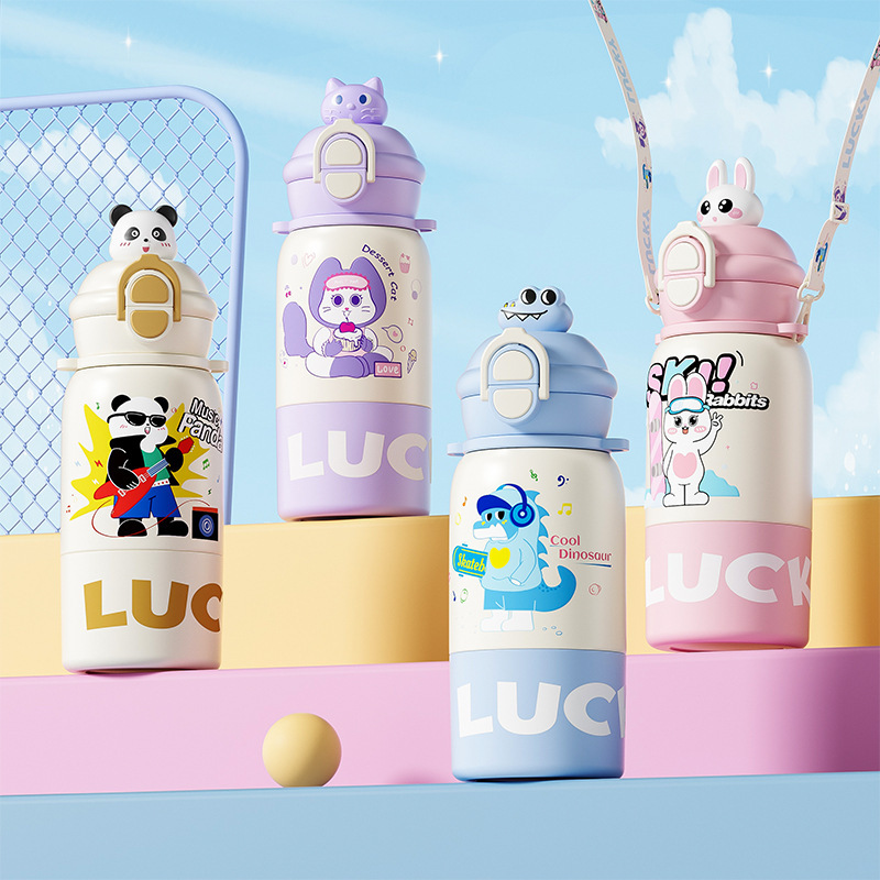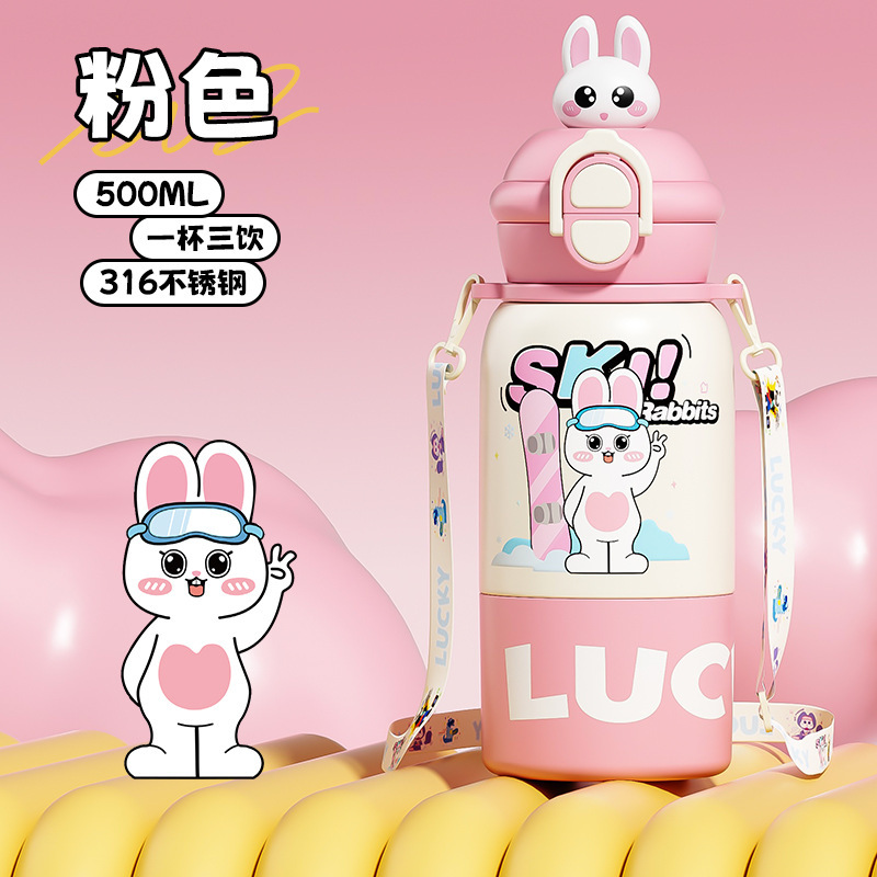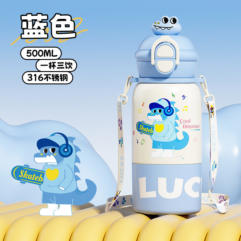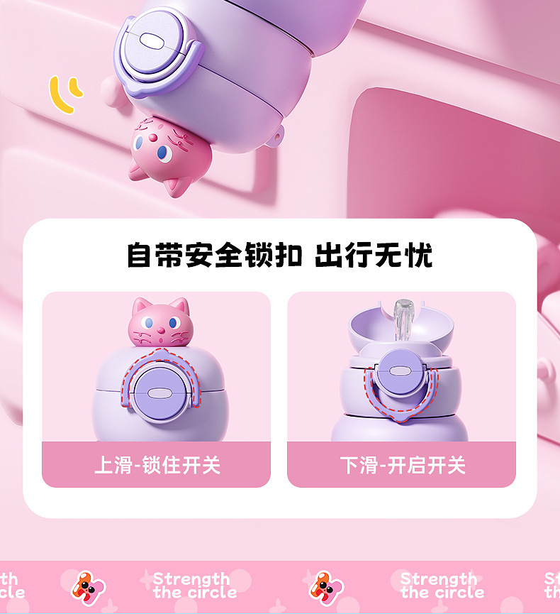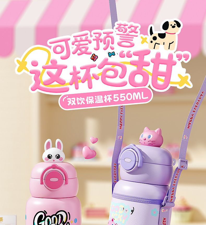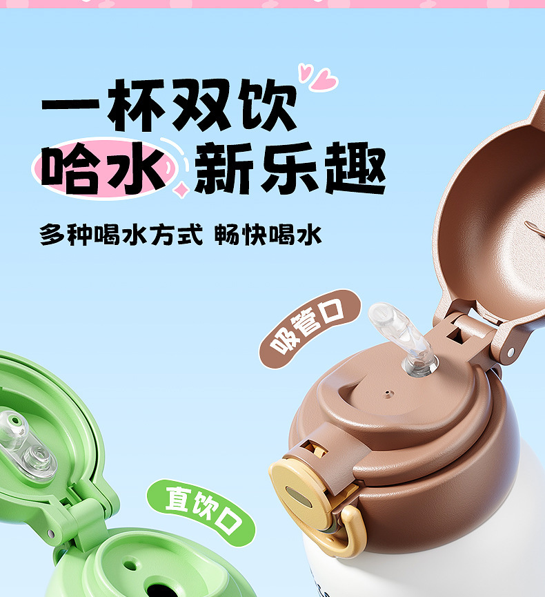卡通公仔儿童保温杯316不锈钢食品级学生吸管水杯便携双饮儿童壶