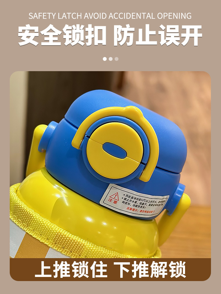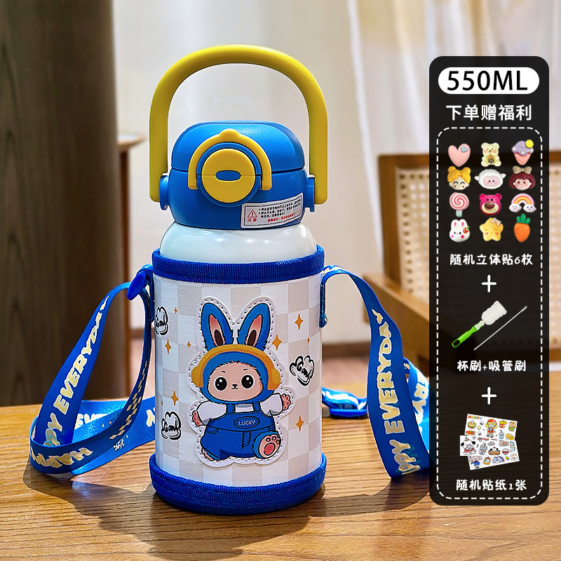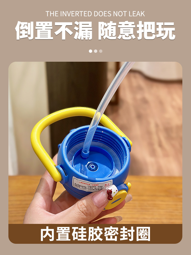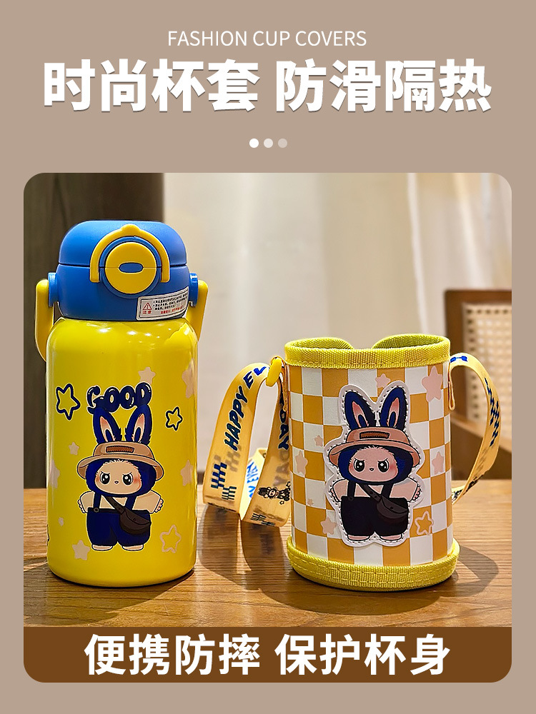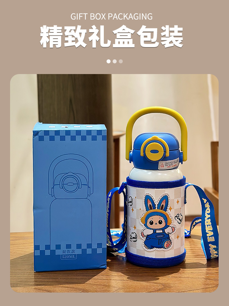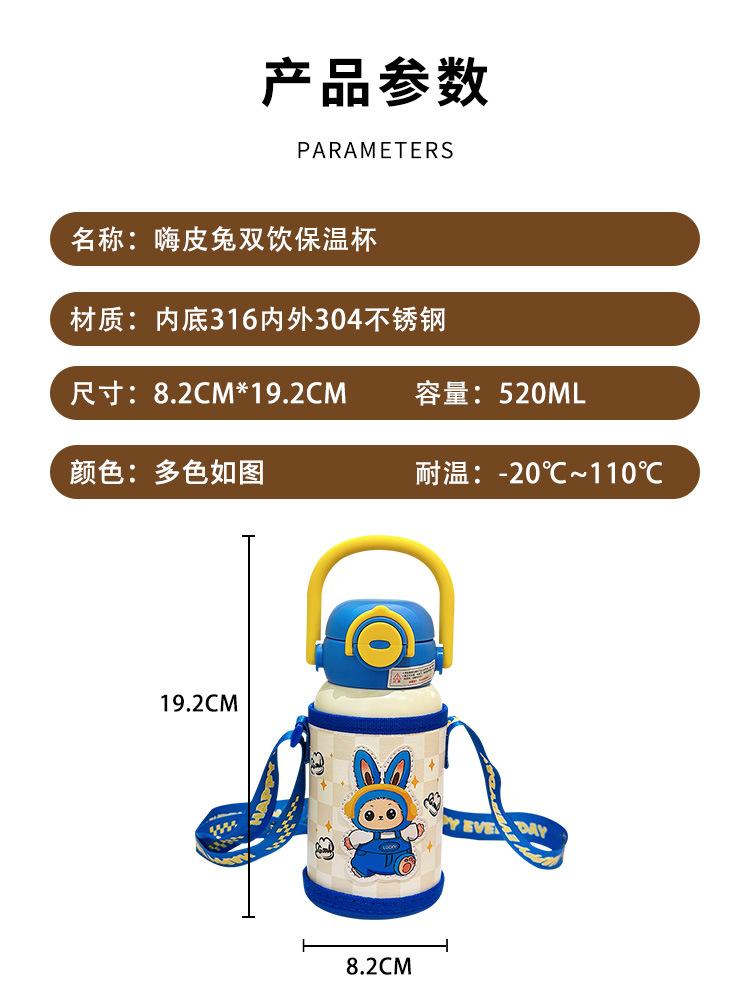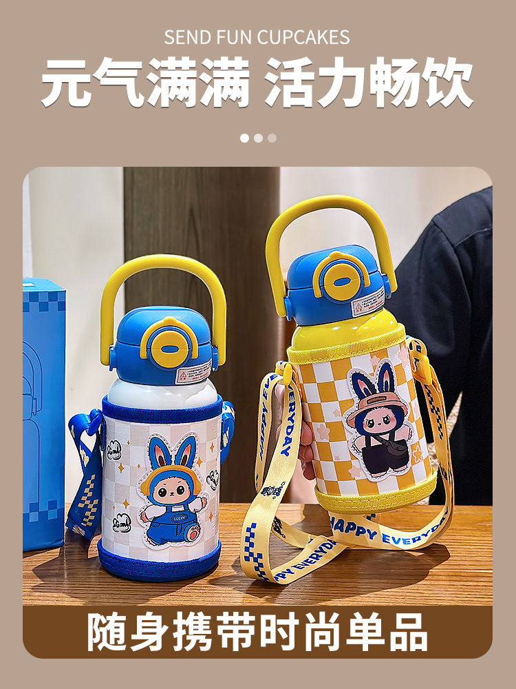 新款潮流布拉布吸管儿童壶316不锈钢双饮保温杯学生上学水杯