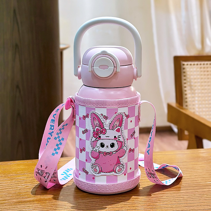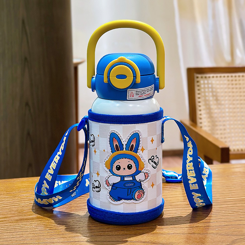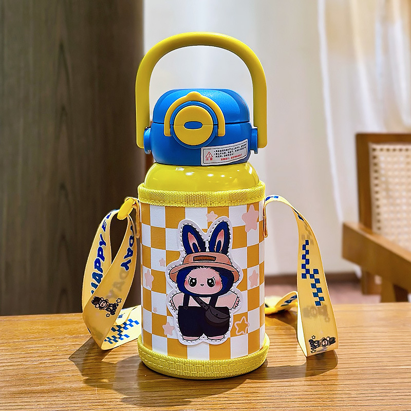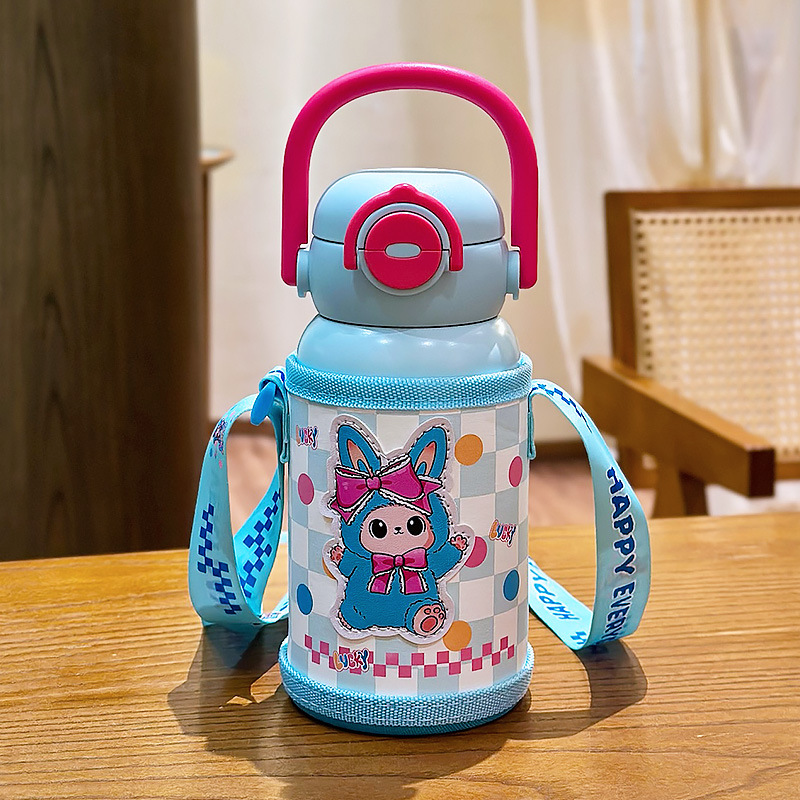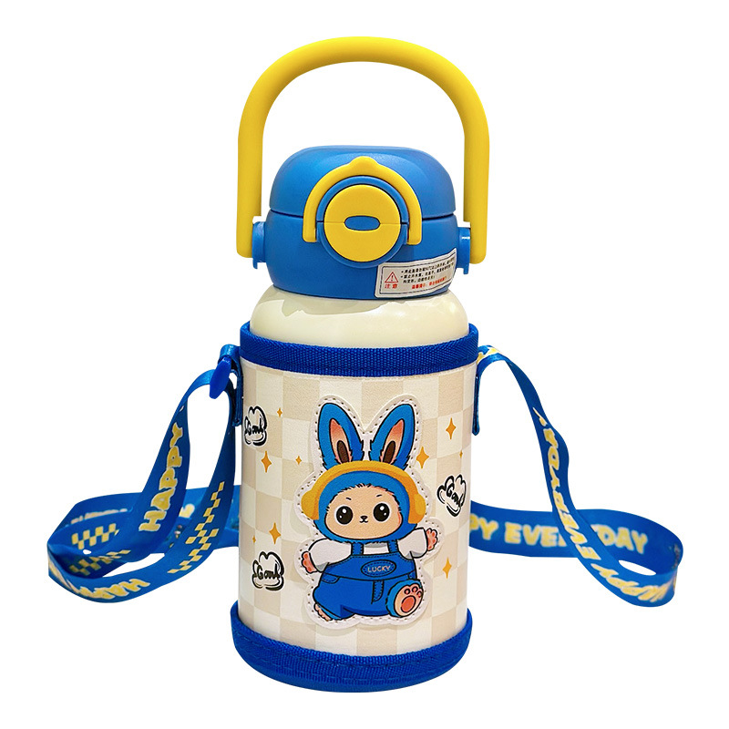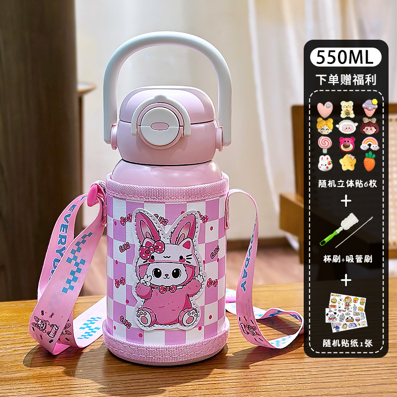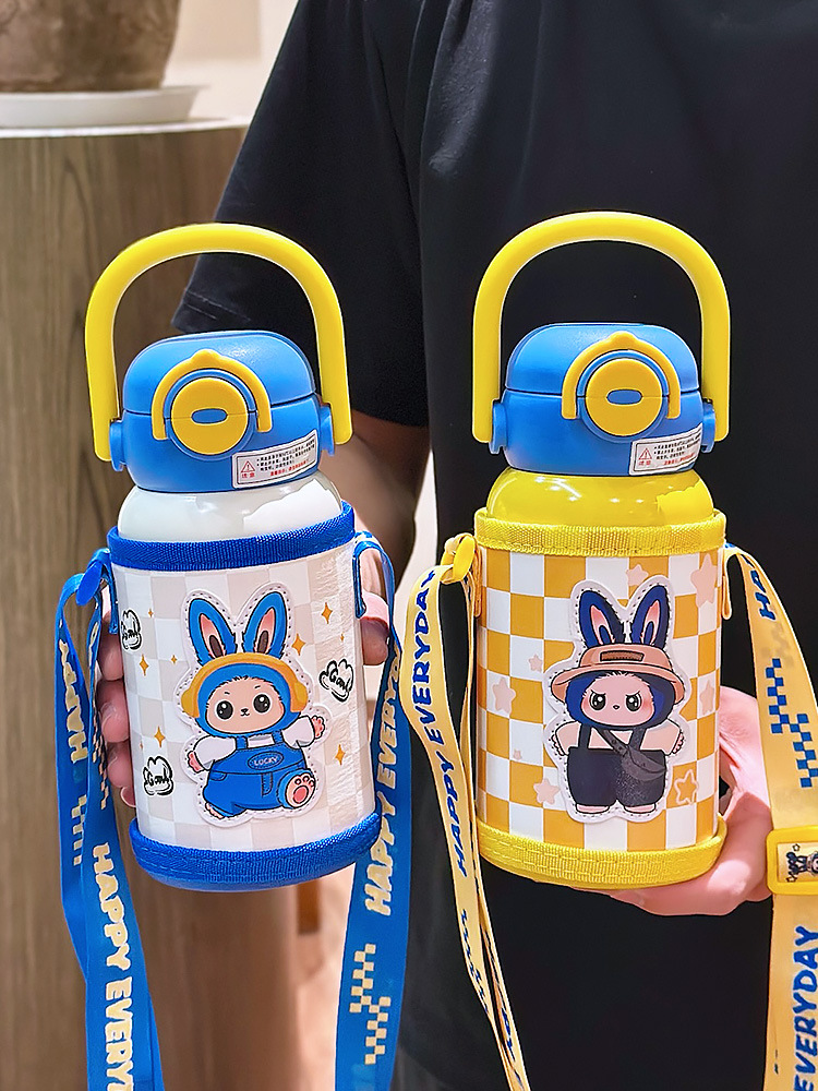 新款潮流布拉布吸管儿童壶316不锈钢双饮保温杯学生上学水杯