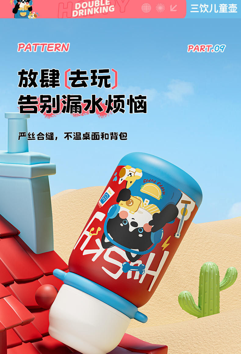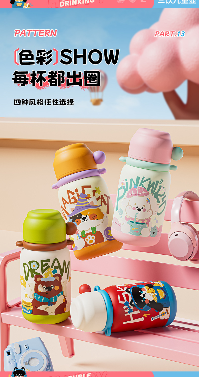 高颜值316不锈钢保温杯可爱涂鸦趣味卡通儿童壶户外便携保温水壶