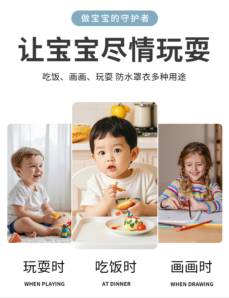 宝宝罩衣吃饭儿童防水反穿衣围兜宝宝吃饭围嘴超软防水婴儿饭兜