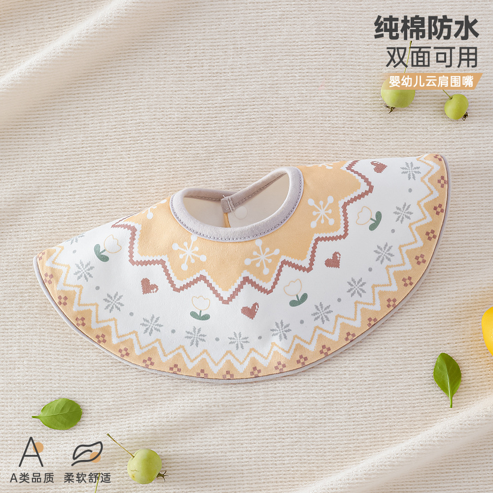 口水巾婴儿a类纯棉围兜防水吃饭兜防吐奶宝宝云肩围嘴新生儿用品