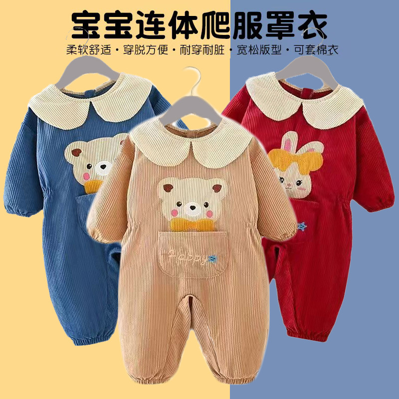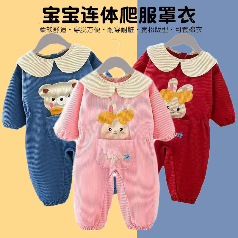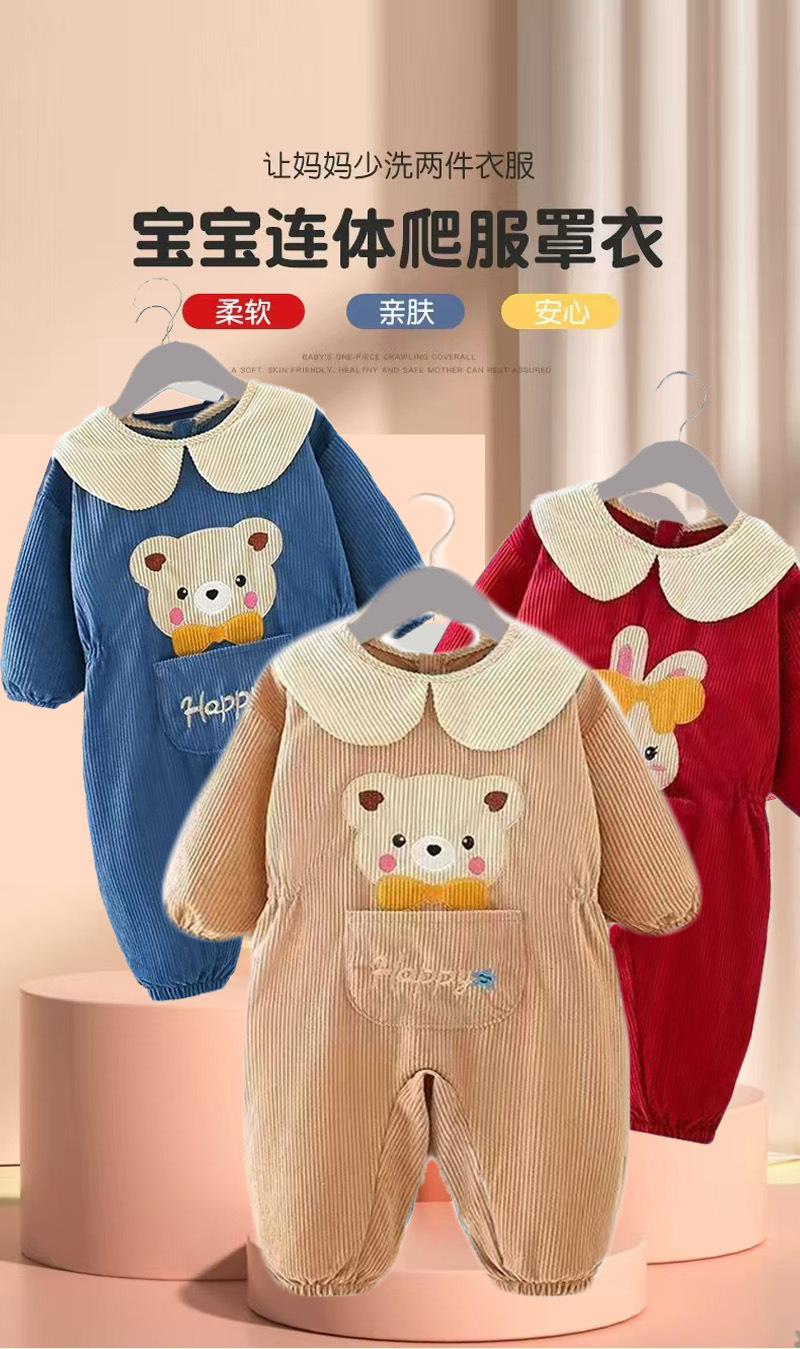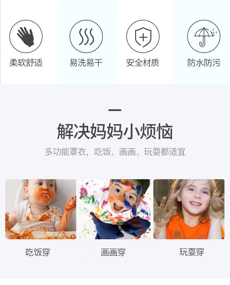 宝宝连体罩衣婴儿童反穿衣男女吃饭围裙防水防脏一体式防水防污