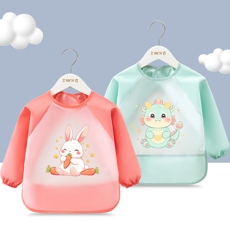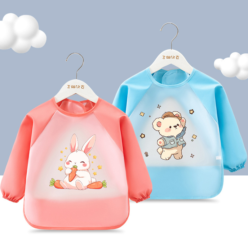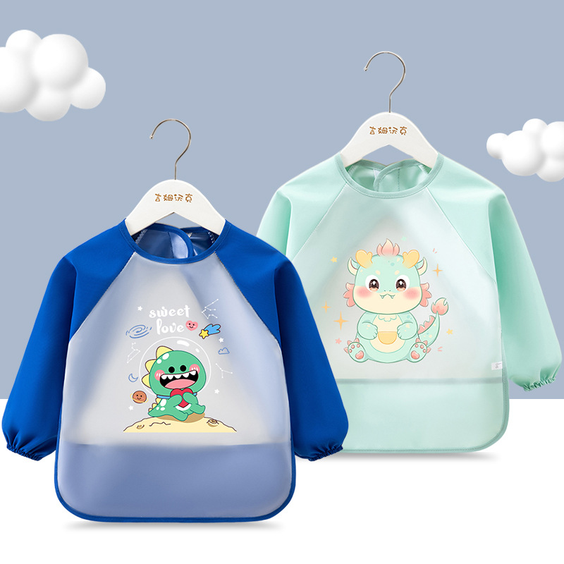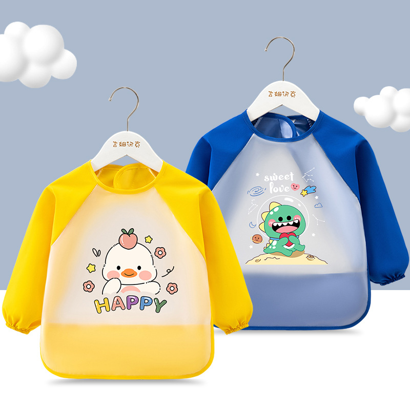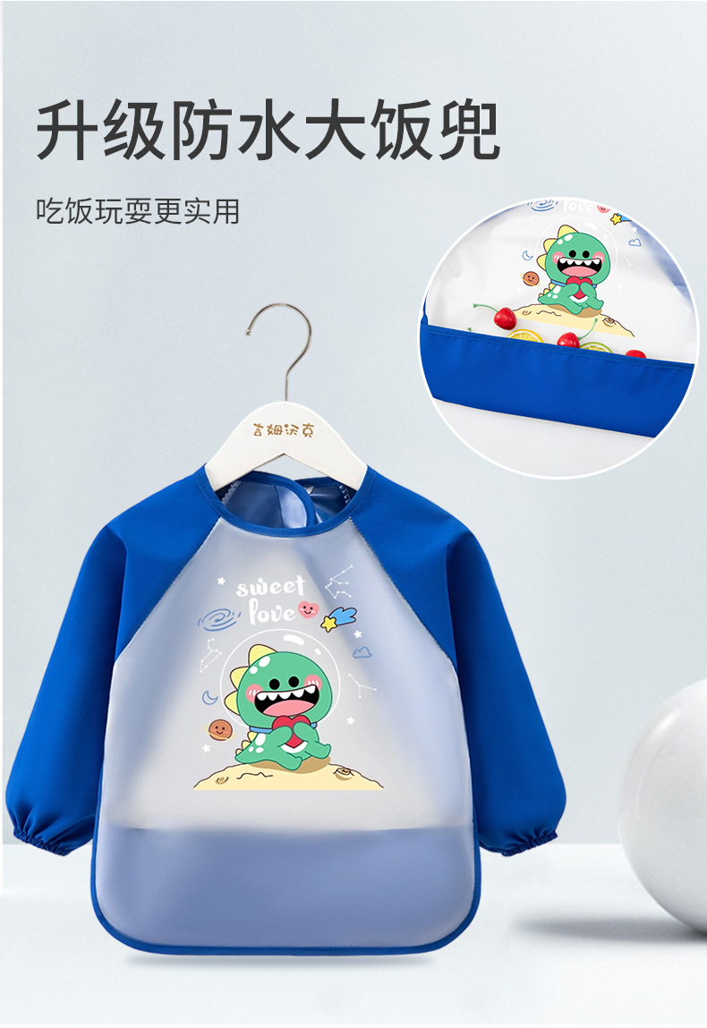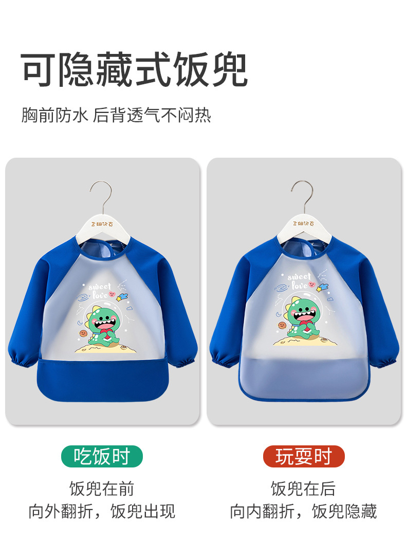 儿童吃饭围兜防水宝宝罩衣防脏小孩长袖饭兜婴儿反穿护衣围裙