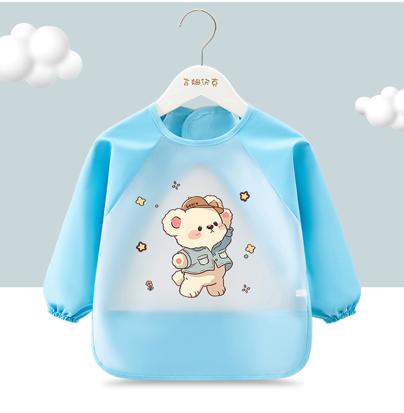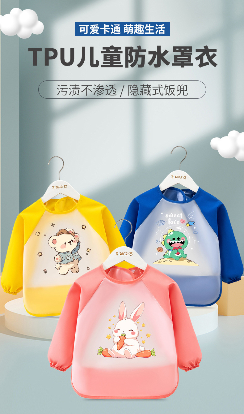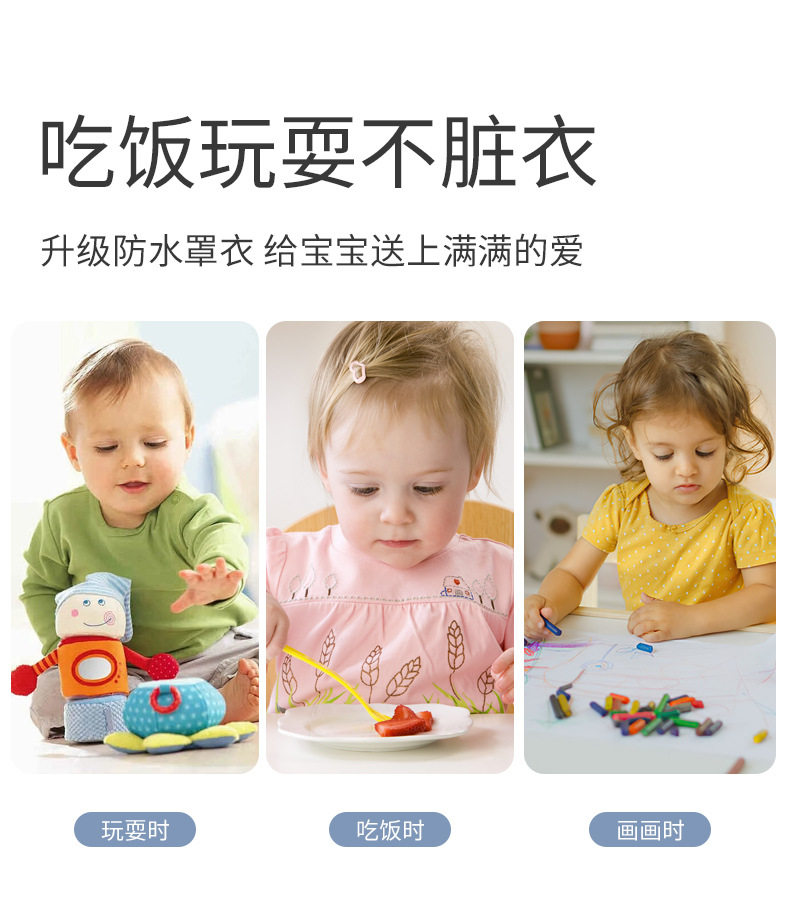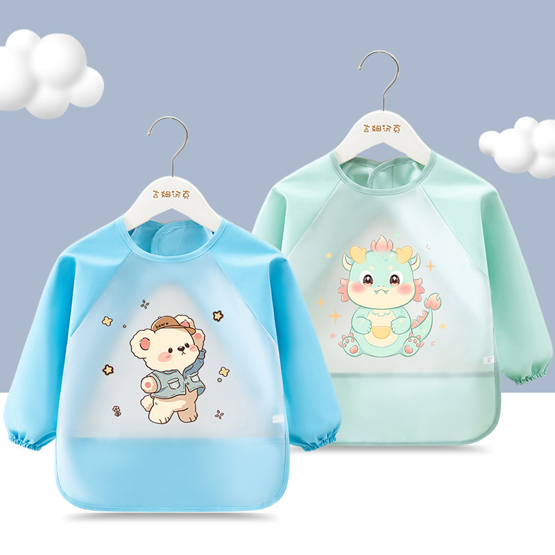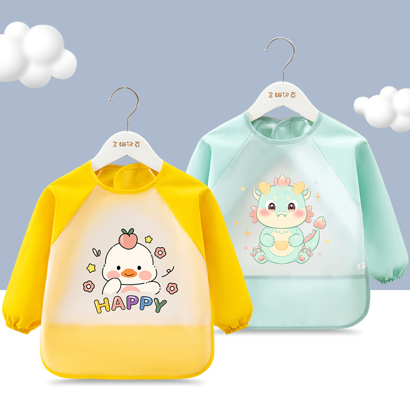 儿童吃饭围兜防水宝宝罩衣防脏小孩长袖饭兜婴儿反穿护衣围裙