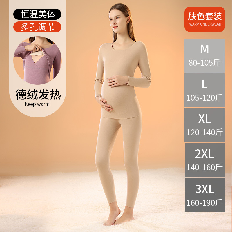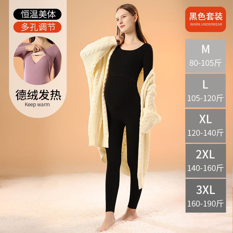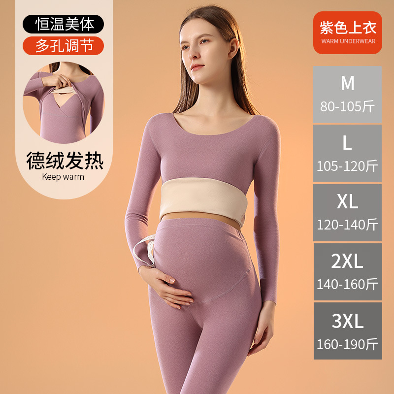 孕妇哺乳秋衣秋裤套装上衣冬季月子服德绒保暖内衣557哺乳开口