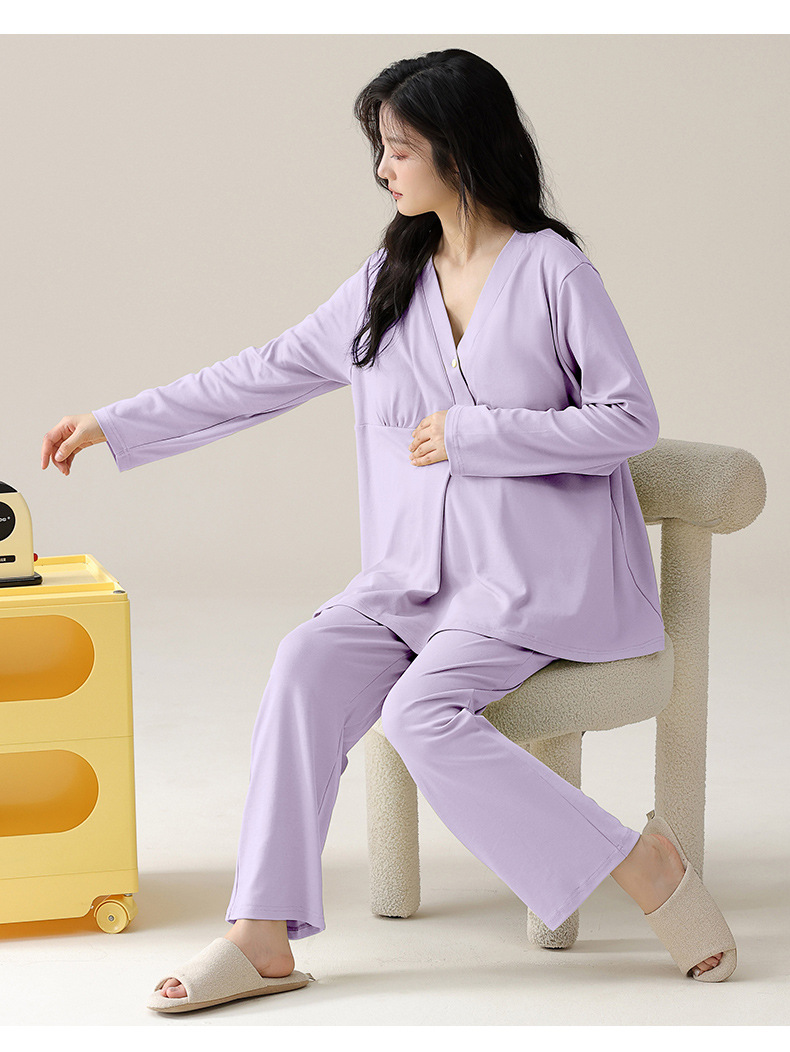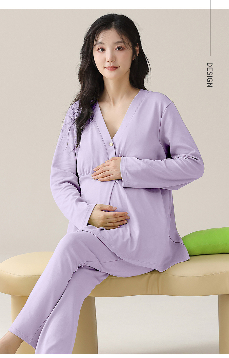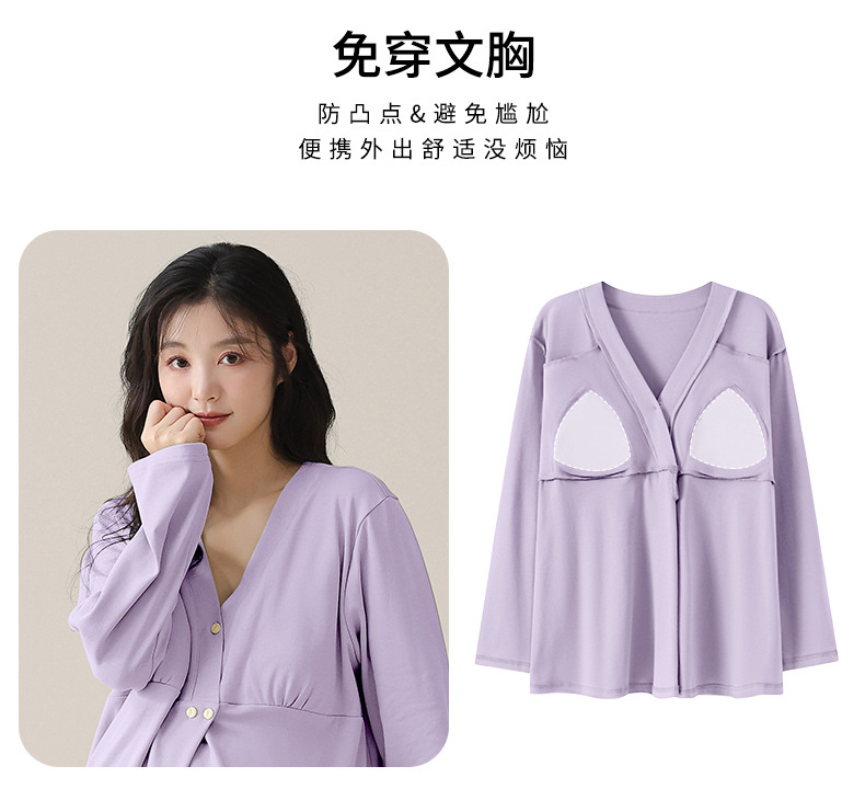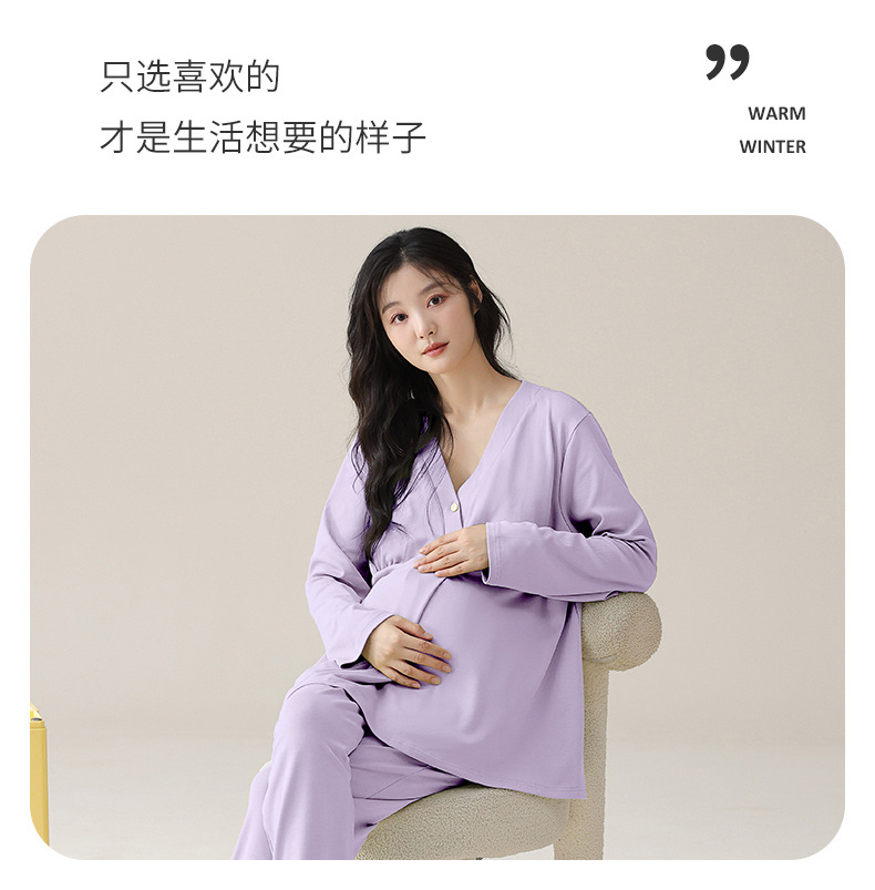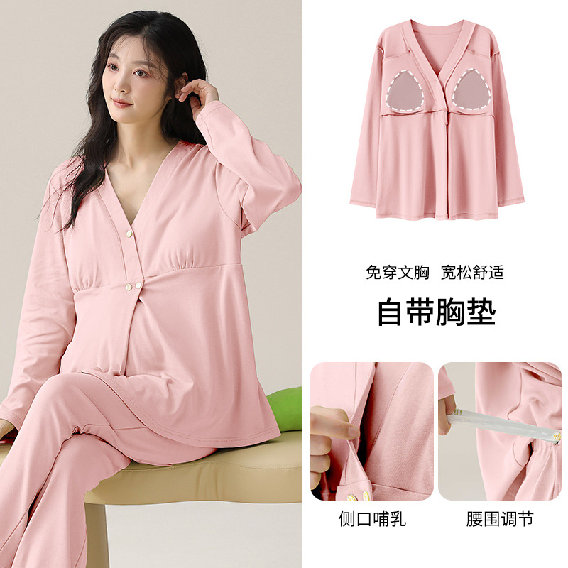 带胸垫月子服纯棉孕妇睡衣怀孕期产后产妇哺乳全棉春秋家居服套装