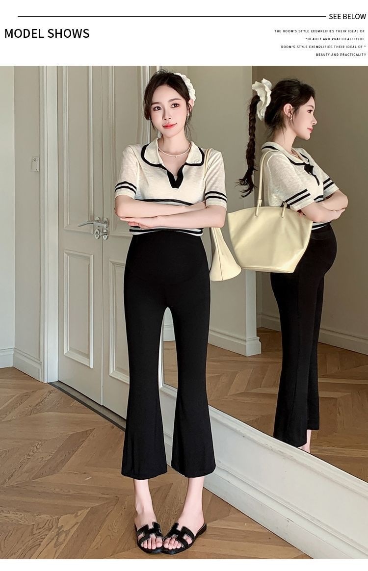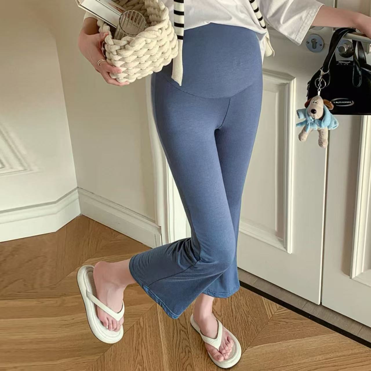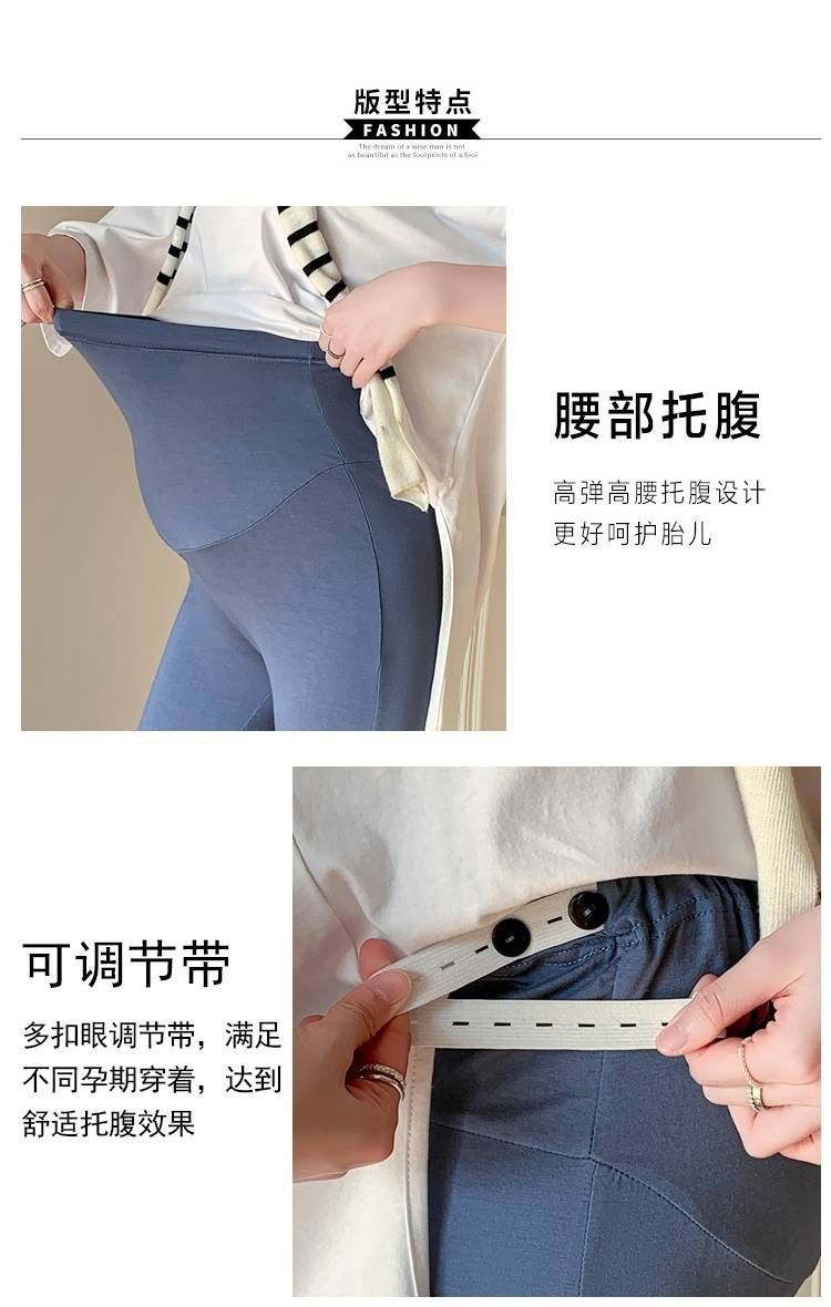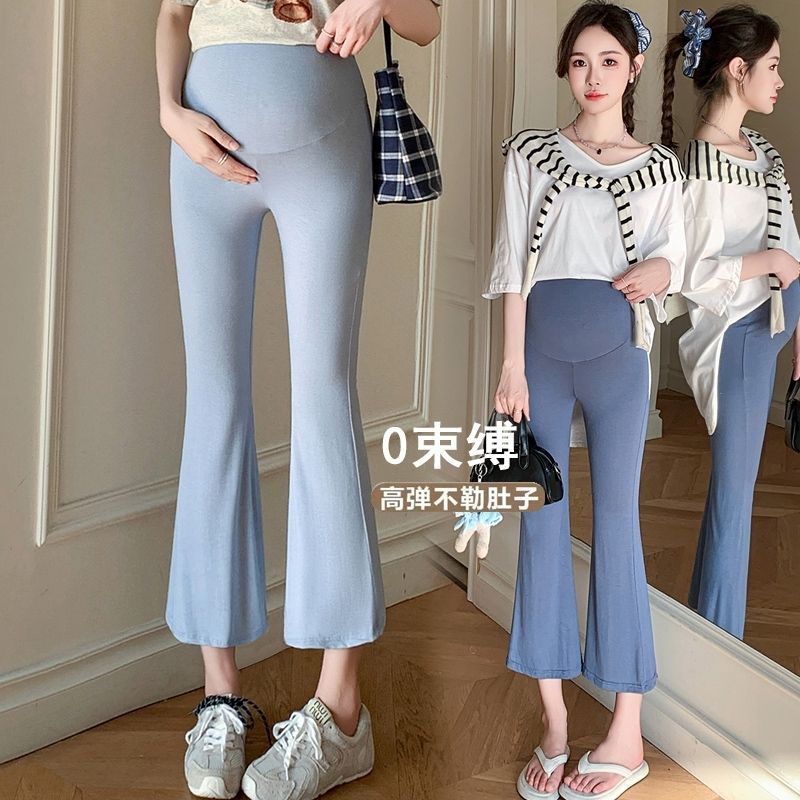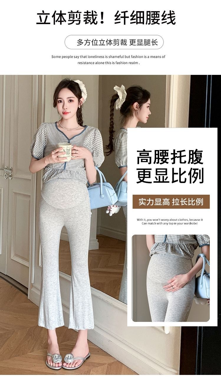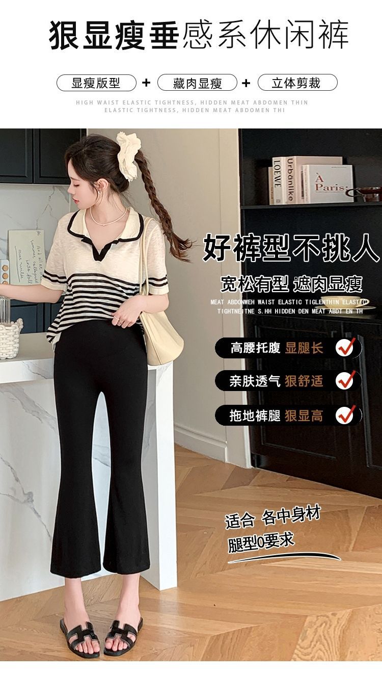 夏季小香风孕妇可调节喇叭裤夏季外穿孕妇裤托腹九分裤孕妇装显瘦