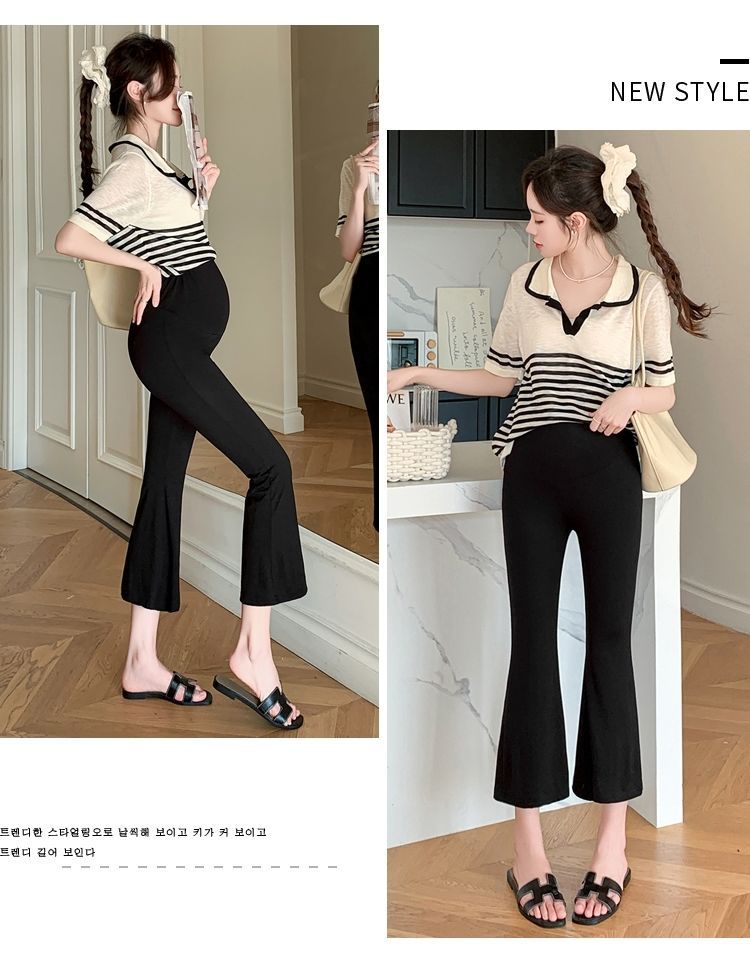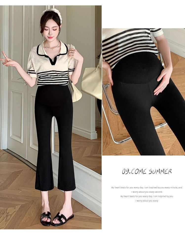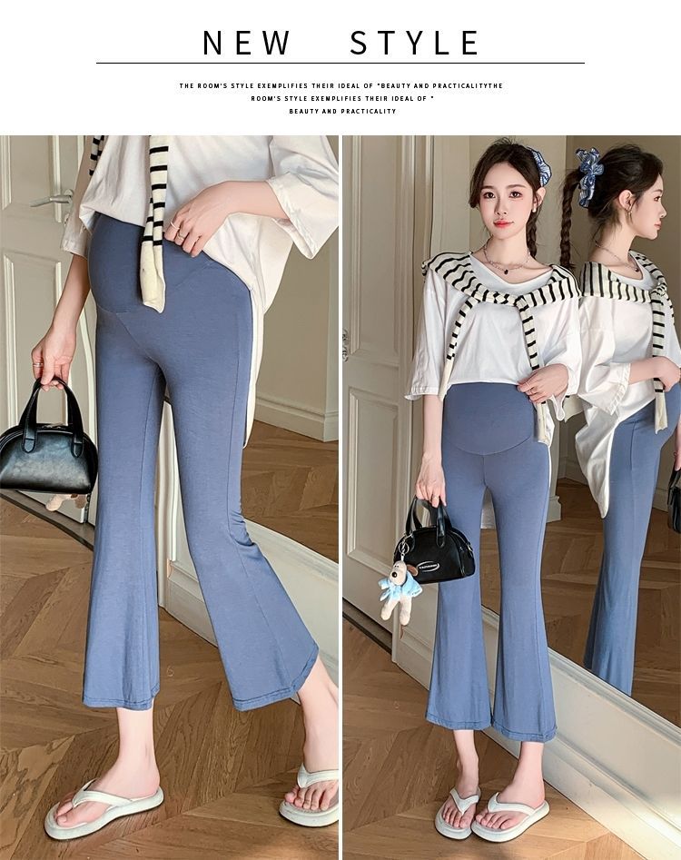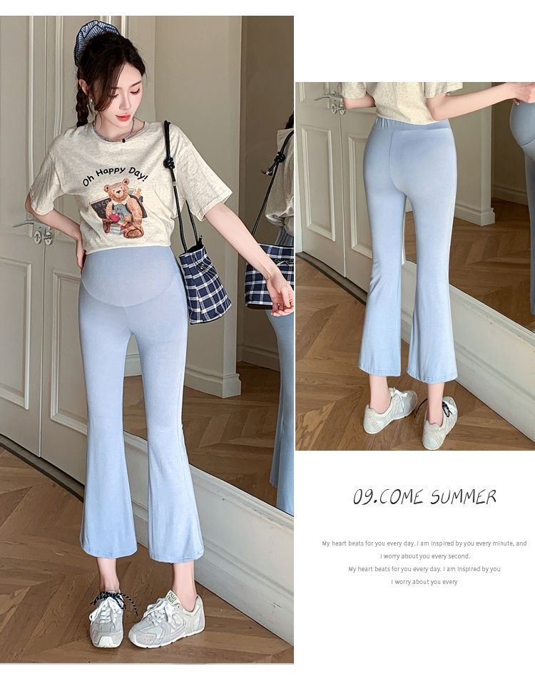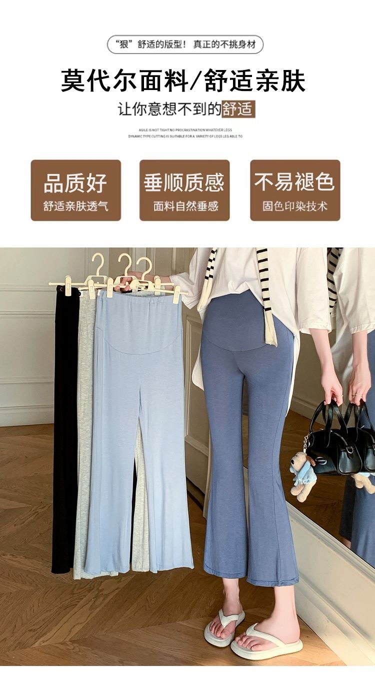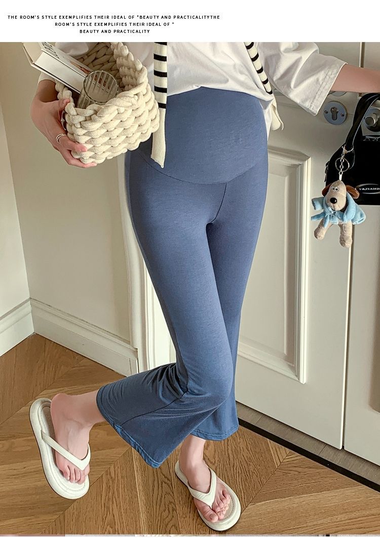 夏季小香风孕妇可调节喇叭裤夏季外穿孕妇裤托腹九分裤孕妇装显瘦