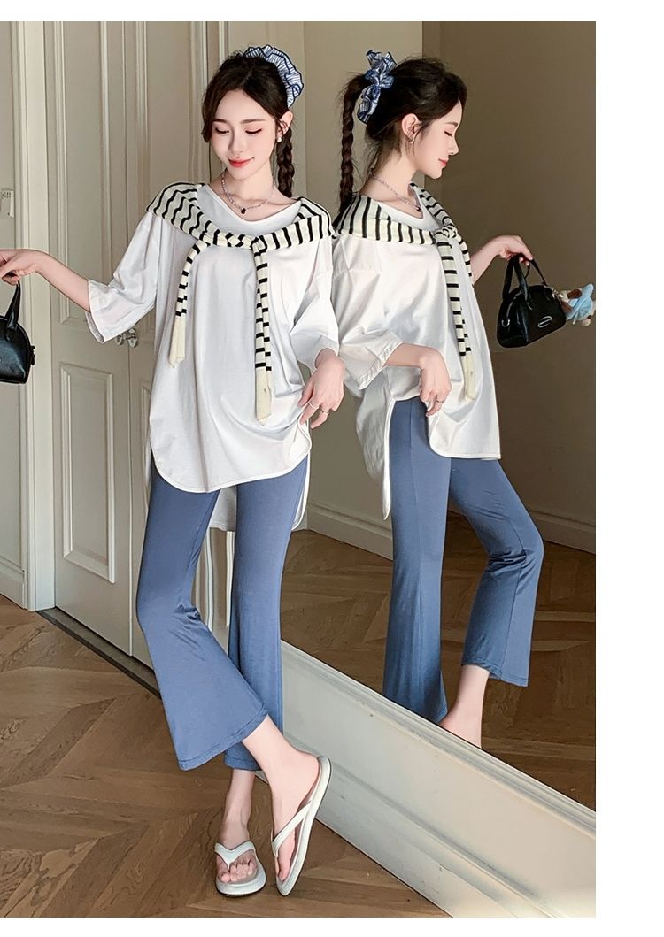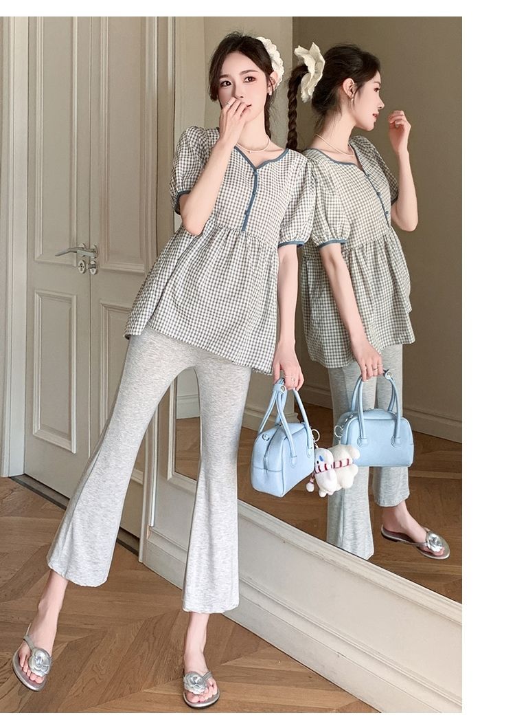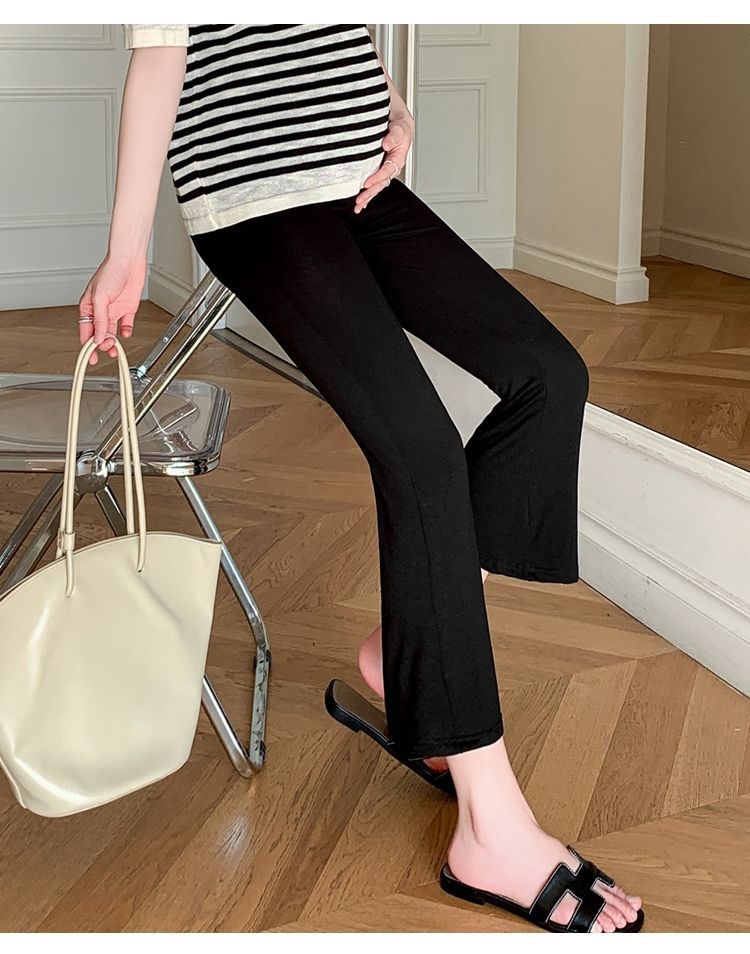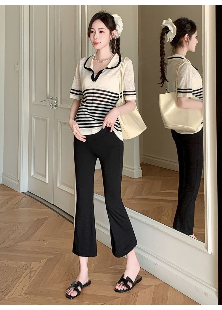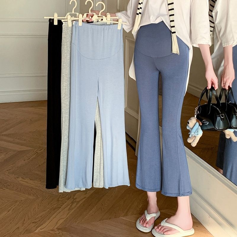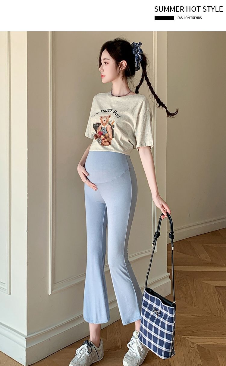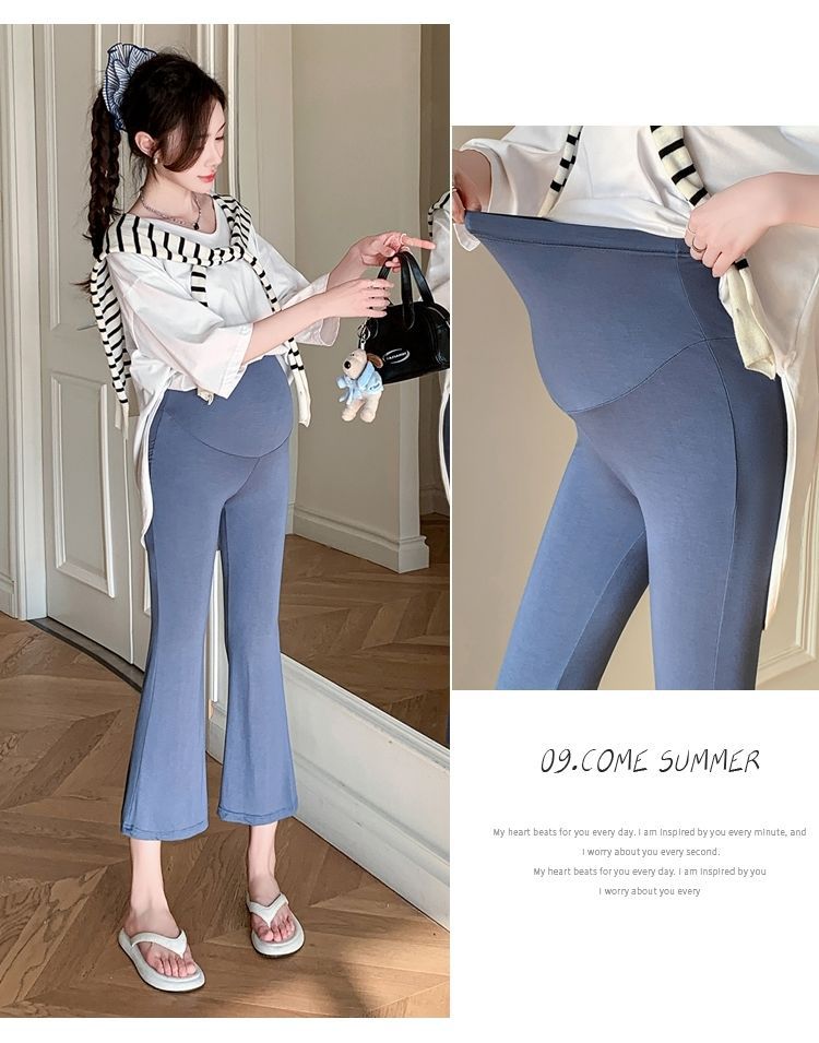 夏季小香风孕妇可调节喇叭裤夏季外穿孕妇裤托腹九分裤孕妇装显瘦