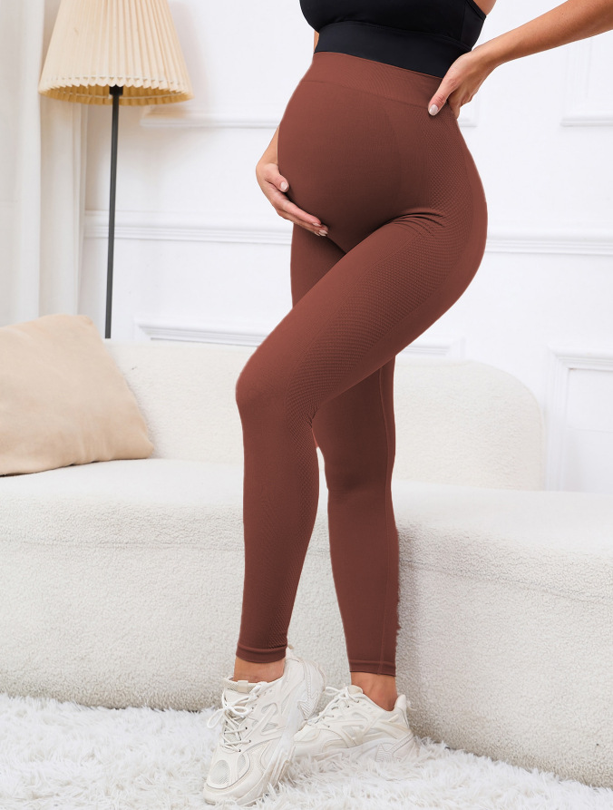 2025新款外穿咖色打底裤孕早期托腹高弹速干不勒肚子长款孕妇裤