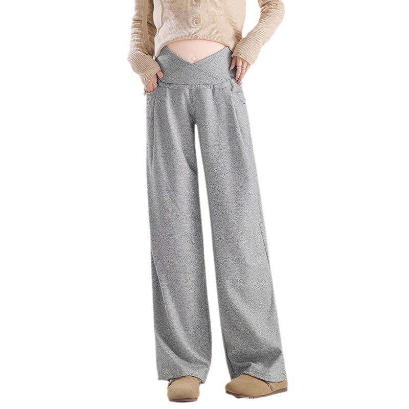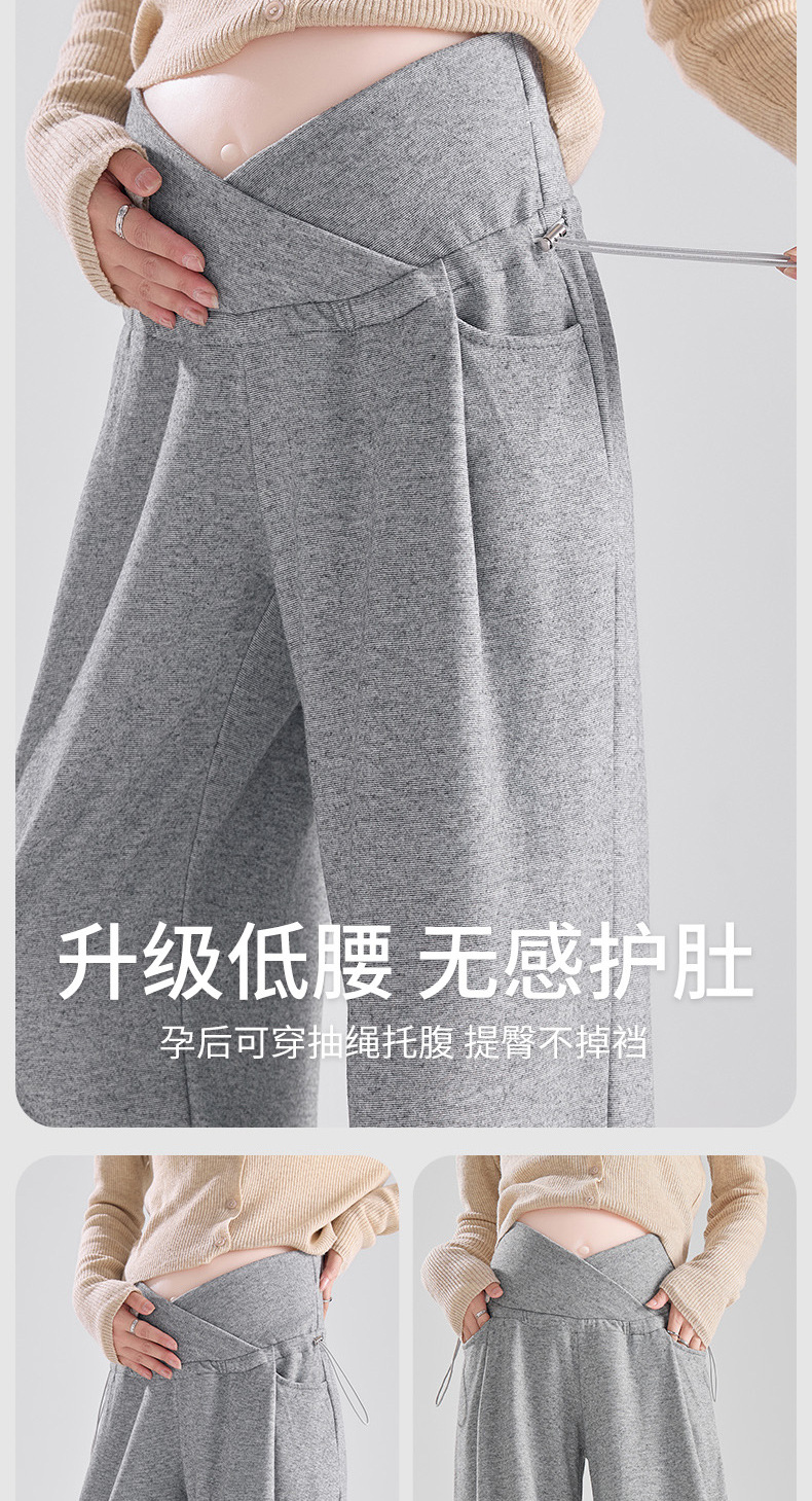 孕妇春秋可调节外穿孕妇交叉护腰托腹裤新款长款长裤孕妇裤糯米裤