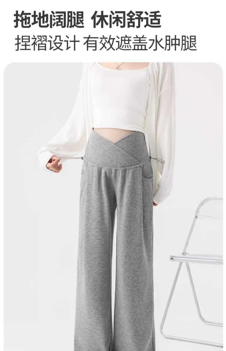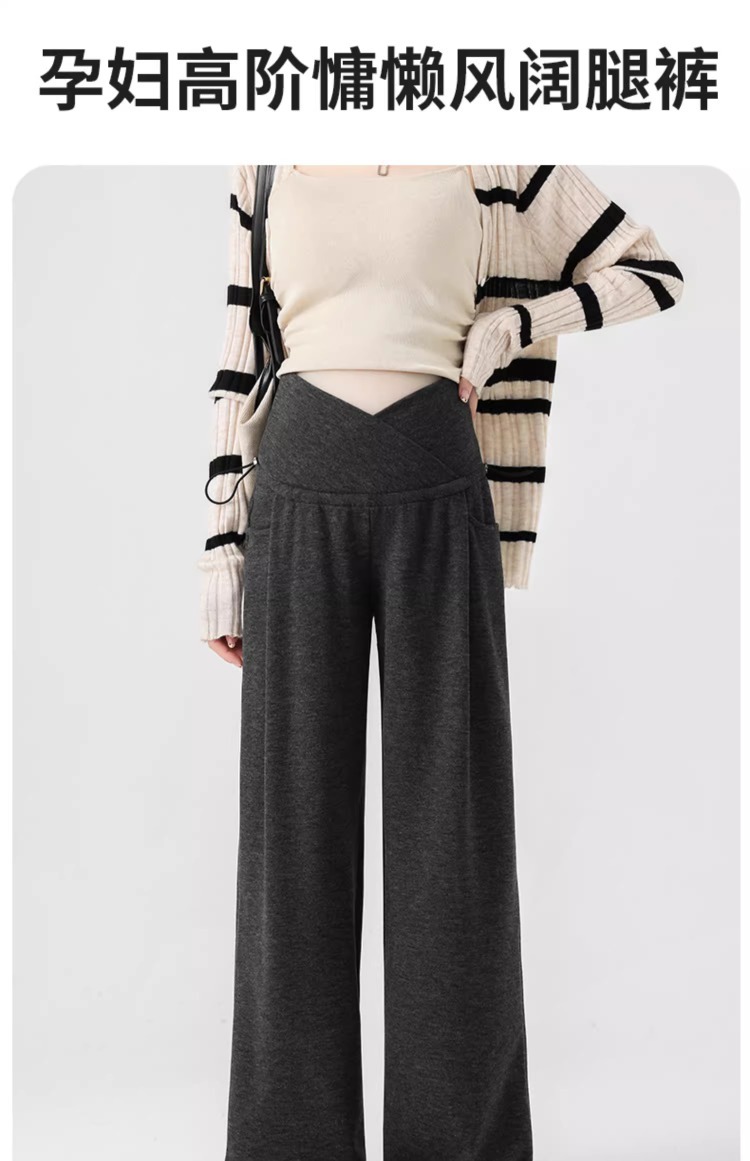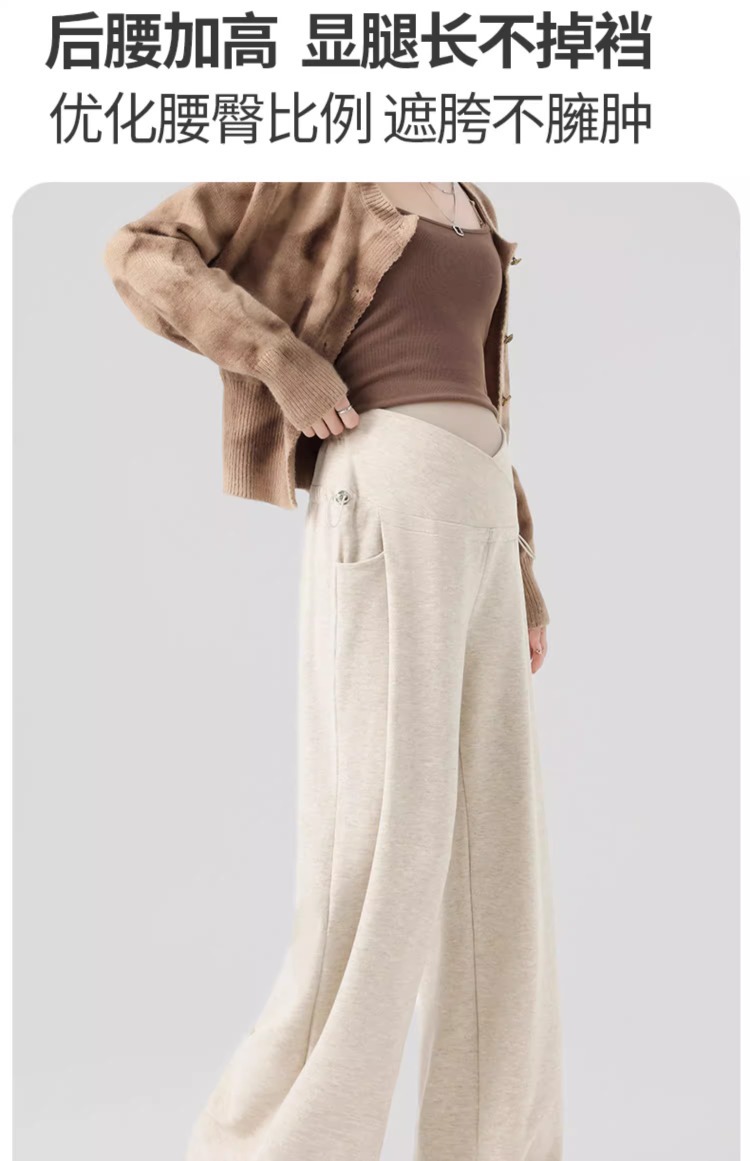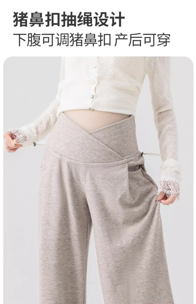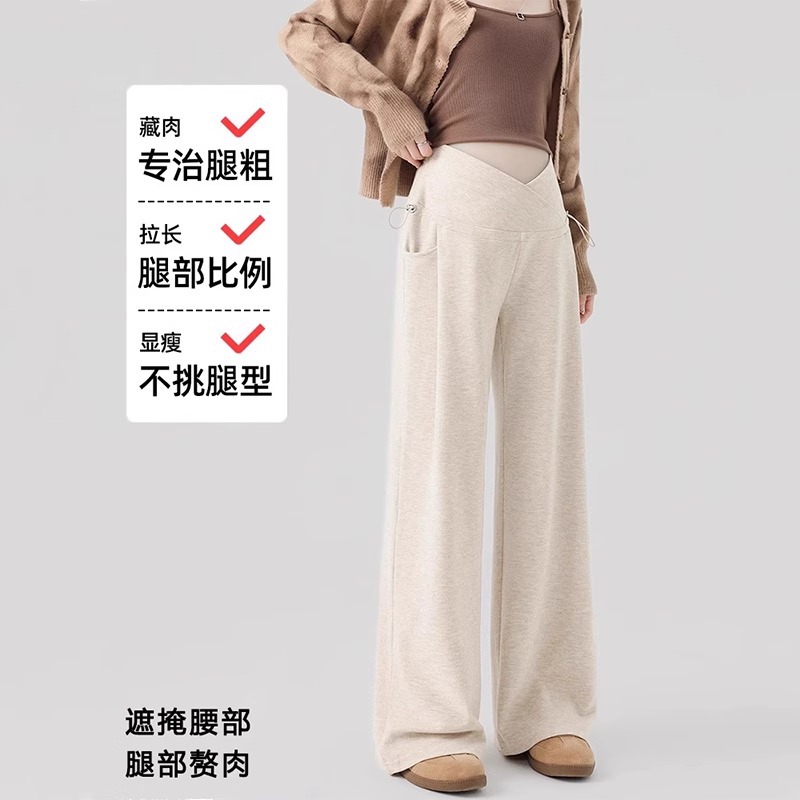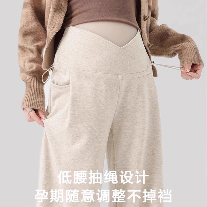 婧麒孕妇休闲裤子春秋款外穿慵懒阔腿裤新款低腰直筒裤孕妇装