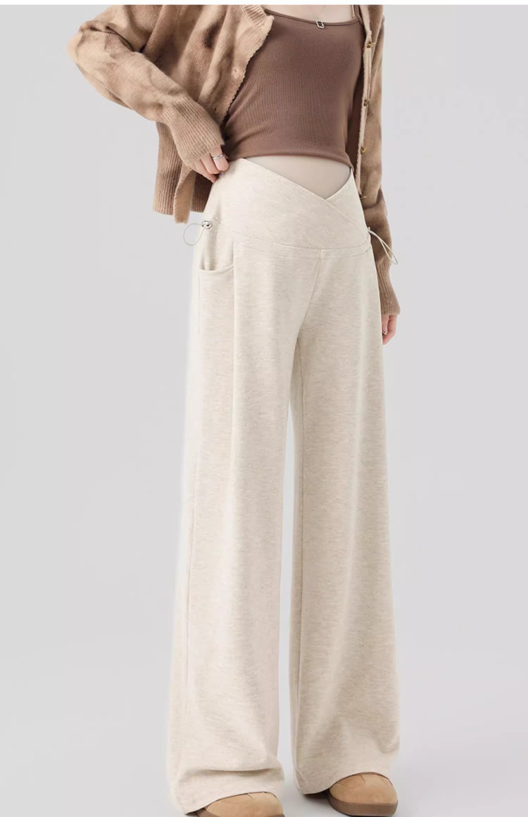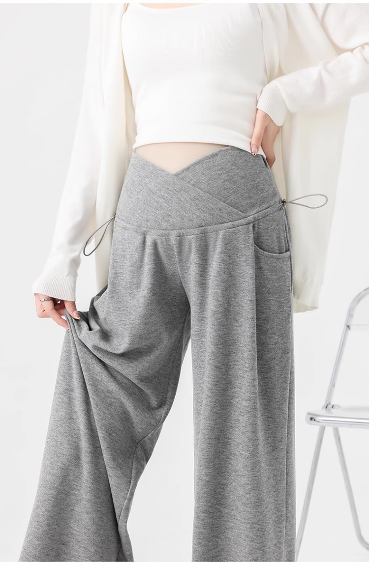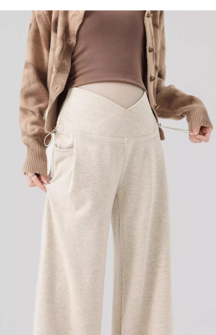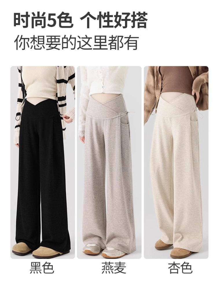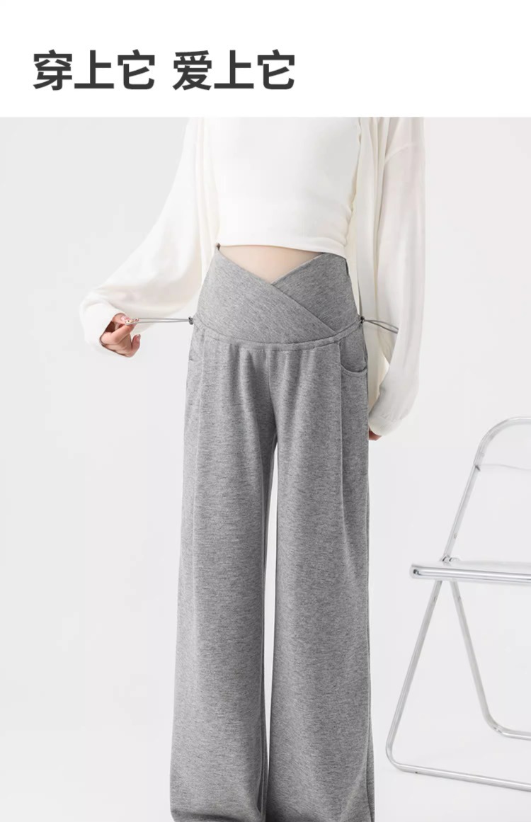 婧麒孕妇休闲裤子春秋款外穿慵懒阔腿裤新款低腰直筒裤孕妇装
