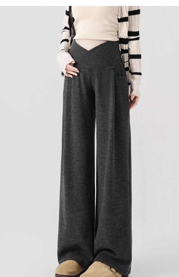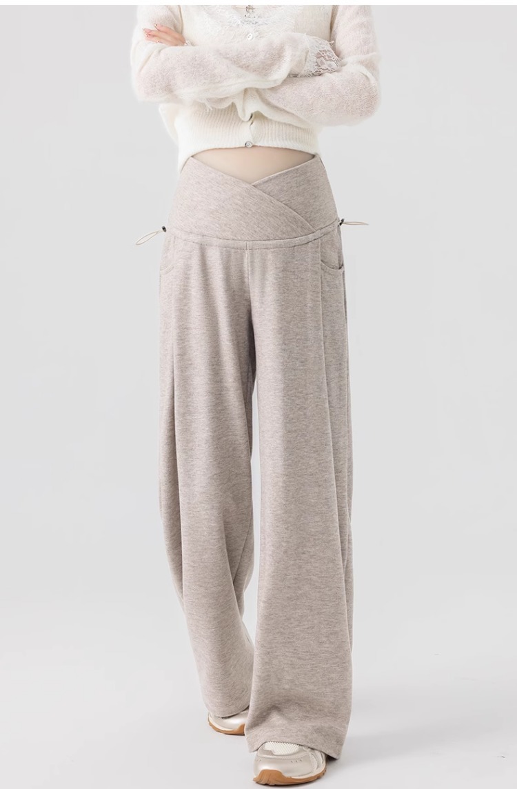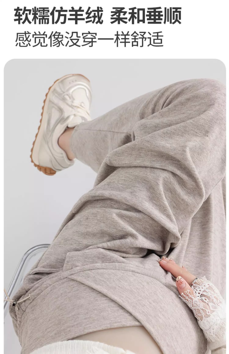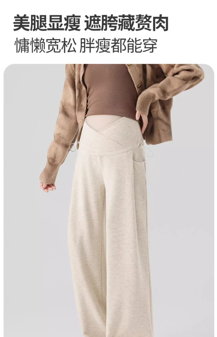 孕妇阔腿裤秋冬外穿休闲显瘦磨绒轻暖裤一体托腹宽松时尚孕妇秋装