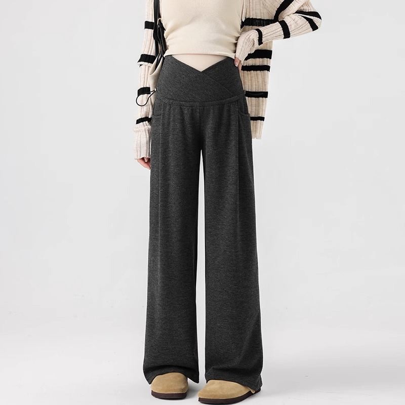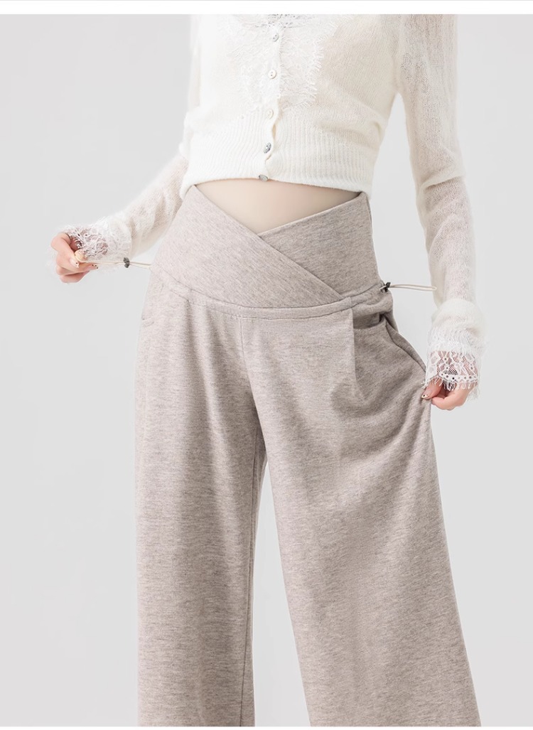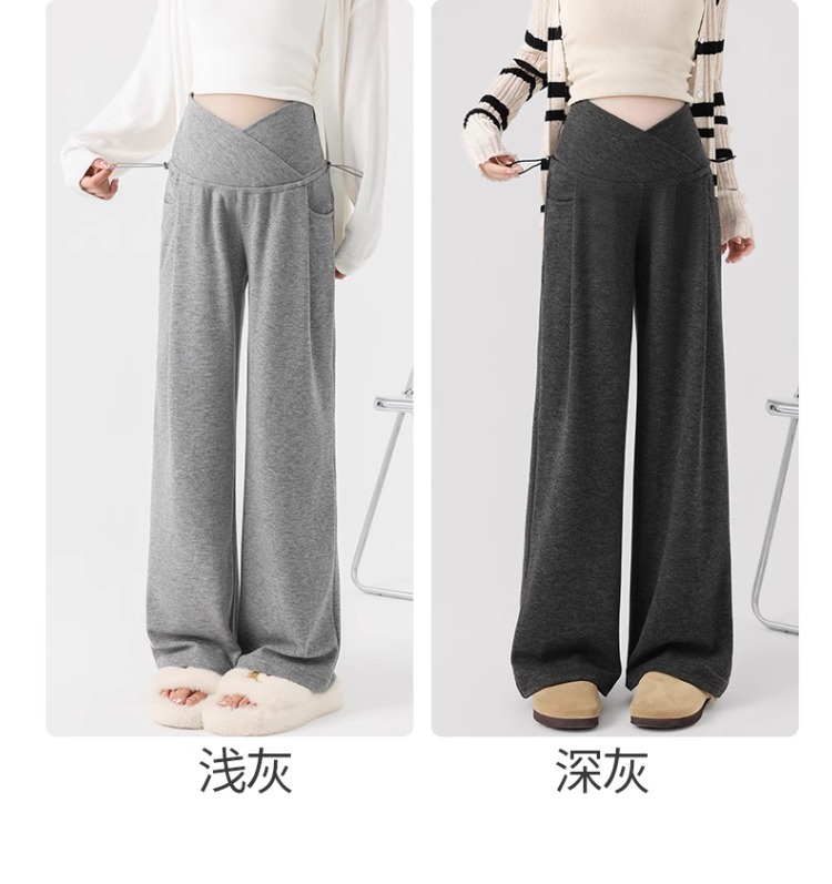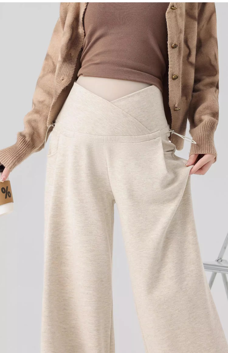 孕妇阔腿裤秋冬外穿休闲显瘦磨绒轻暖裤一体托腹宽松时尚孕妇秋装
