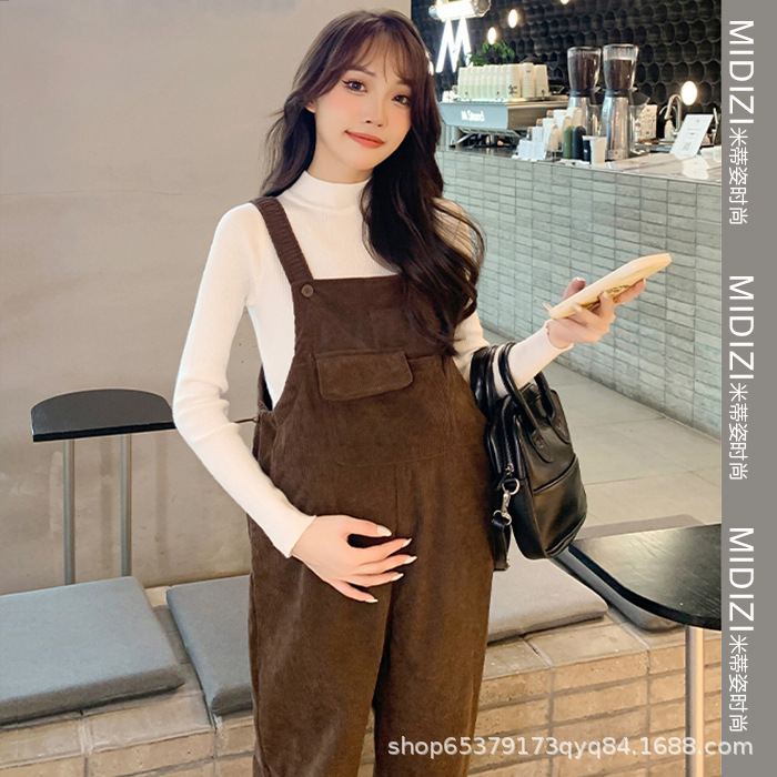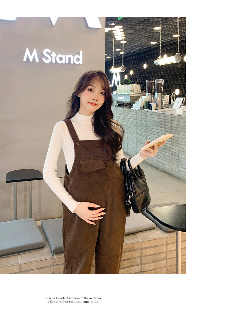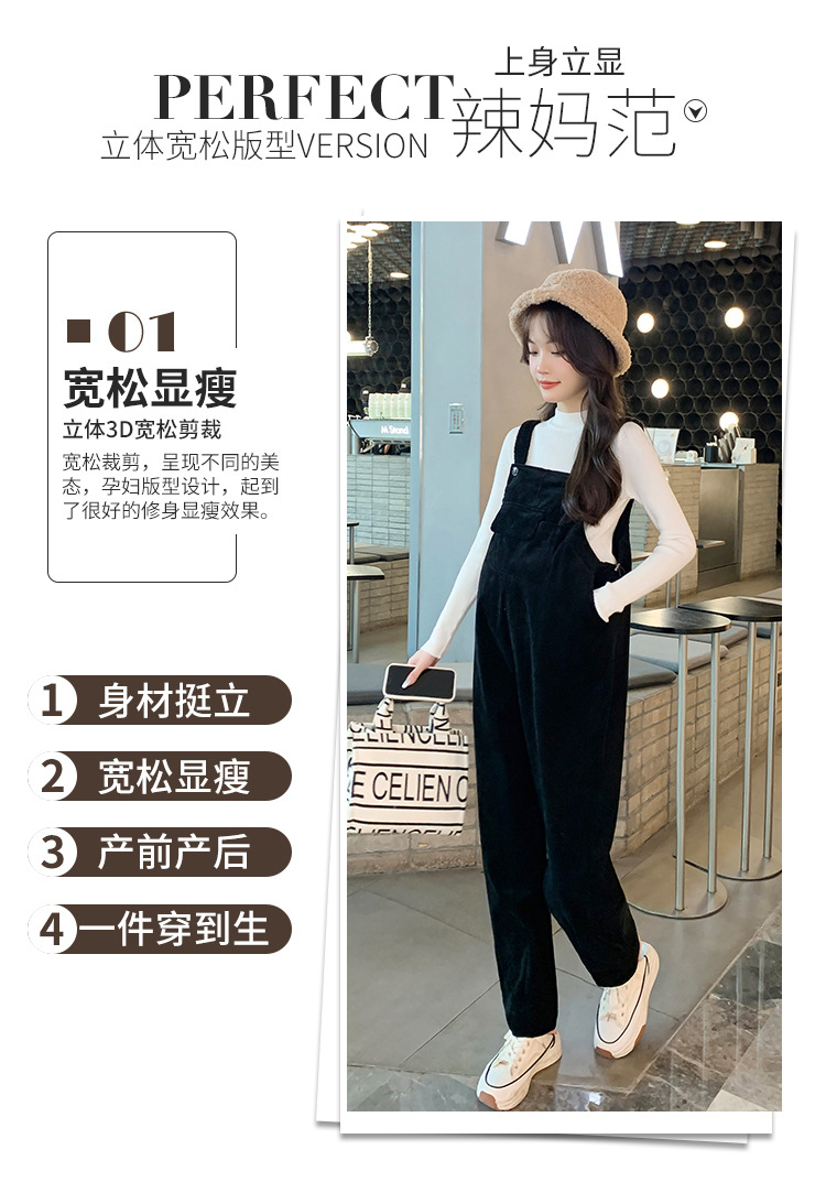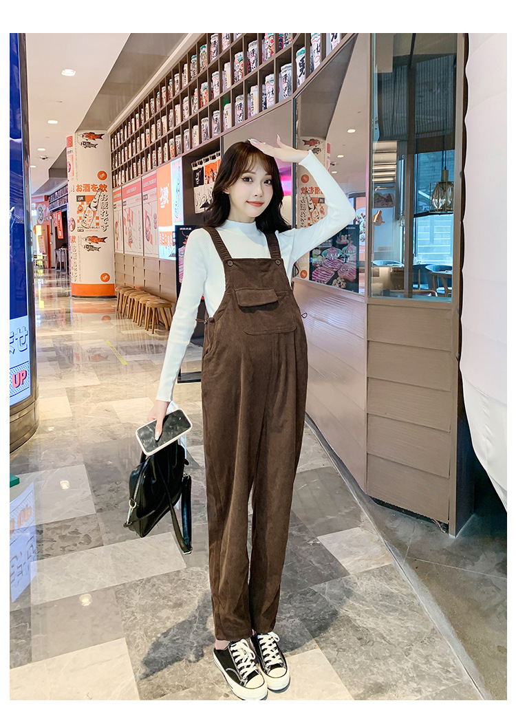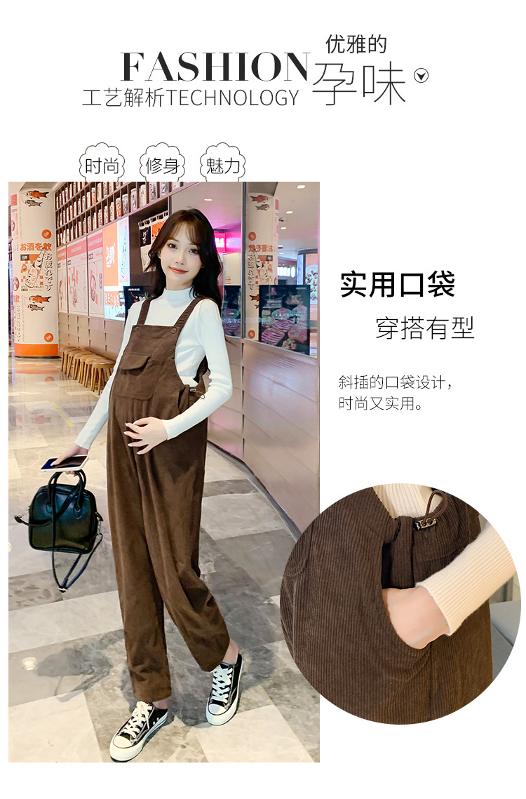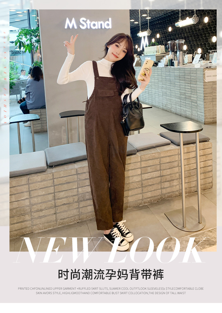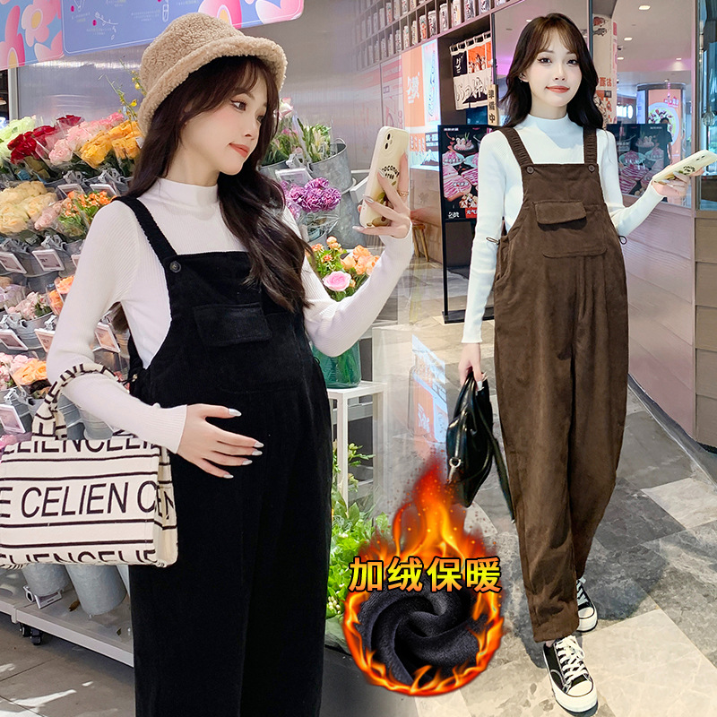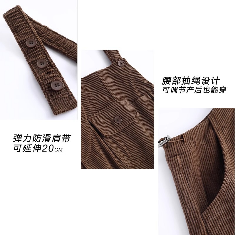 孕妇背带裤春秋款2025小个子灯芯绒孕妇裤加厚秋冬套装两件套时尚