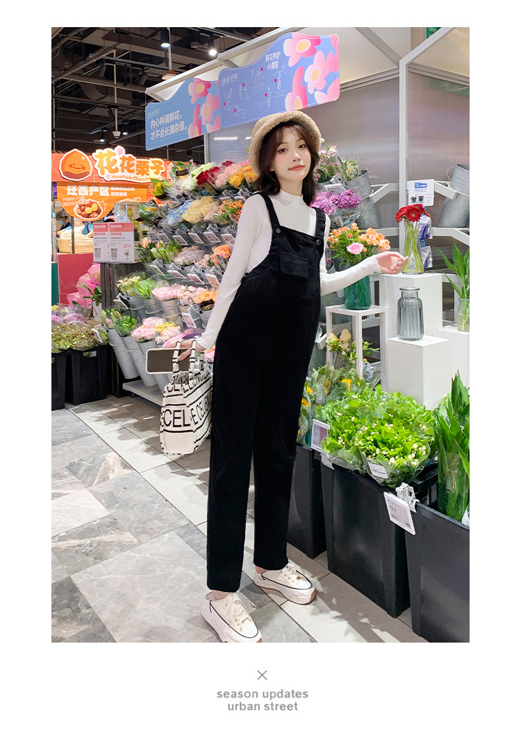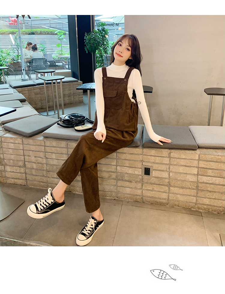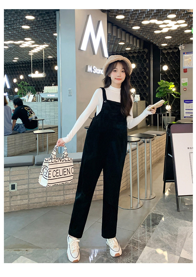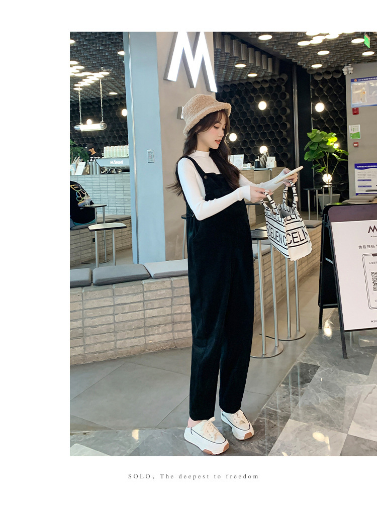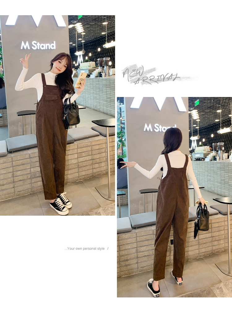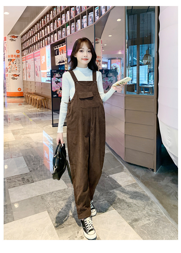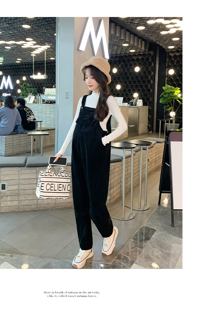 孕妇背带裤春秋款2025小个子灯芯绒孕妇裤加厚秋冬套装两件套时尚