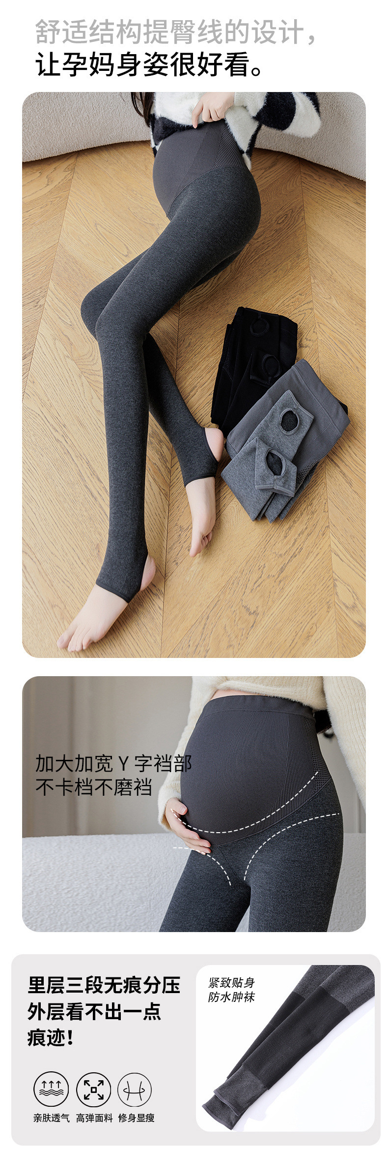 秋季新款无痕孕妇竖条纹显瘦打底袜棉质三段分压防水肿打底裤