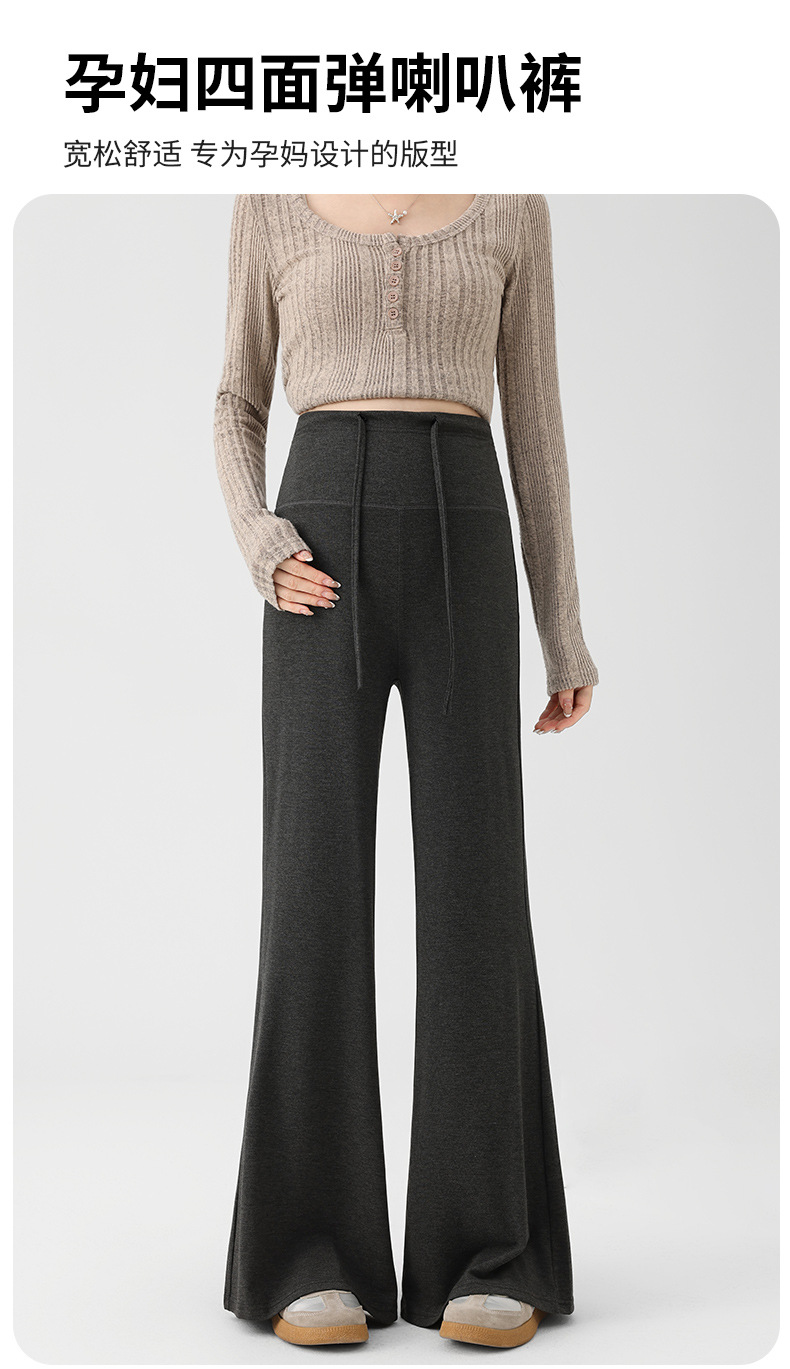 婧麒孕妇裤秋冬外穿加绒加厚微喇叭裤长裤2025新款糯米裤子孕妇装