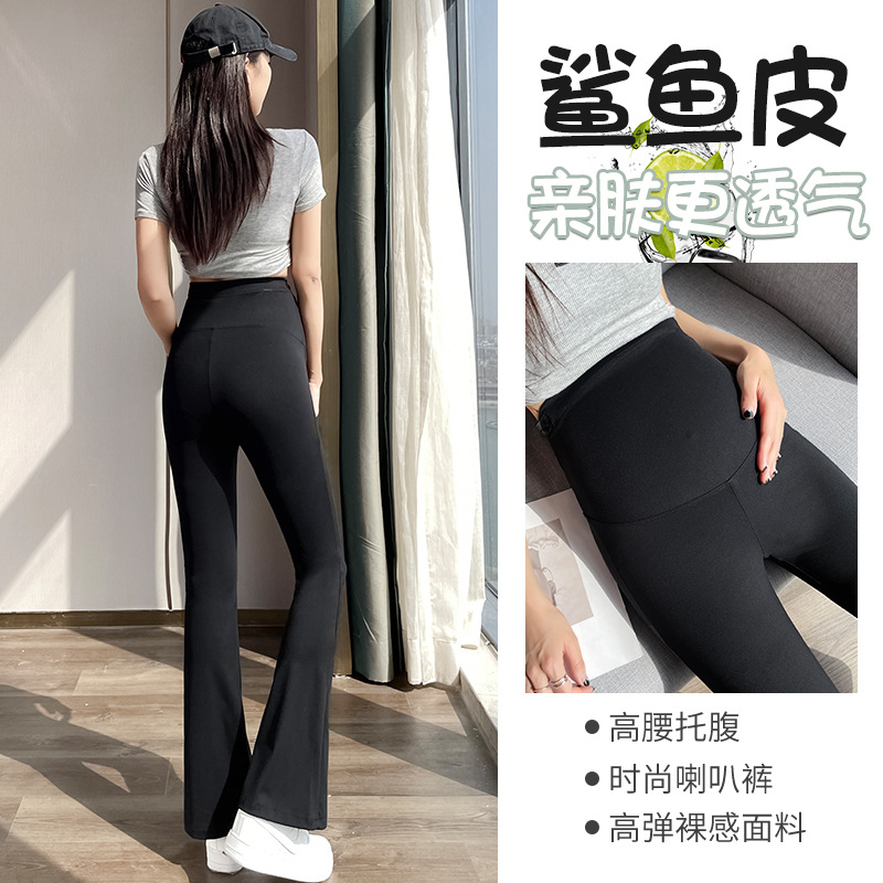 孕妇裤子春秋微喇瑜伽裤夏季薄款外穿打底裤喇叭鲨鱼裤春装