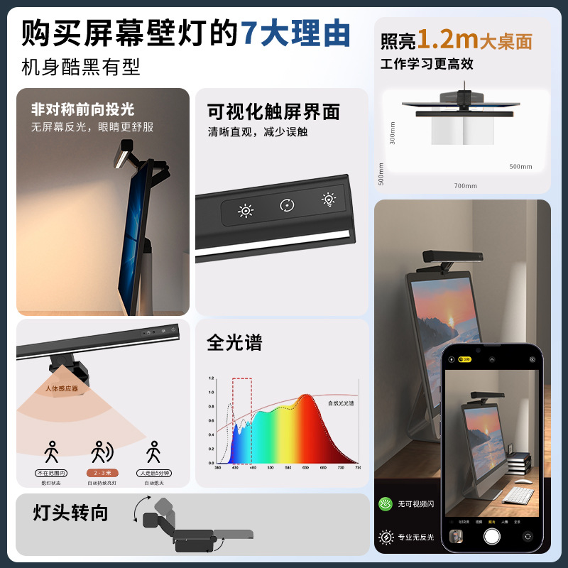 人体感应屏幕挂灯台式电脑显示屏护眼灯显示器桌面光灯防蓝光