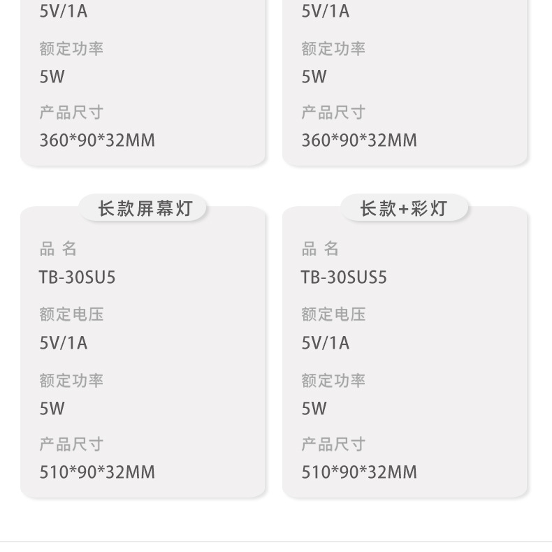 - TB-30SUSRGB屏幕灯36CM(五档色温+五档调光+无极调光+RGB七彩)